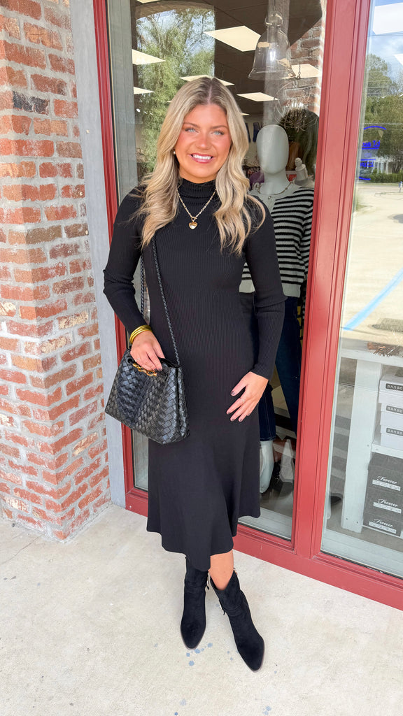 "Confidence Shining" Mock Neck Long Sleeve Midi Dress