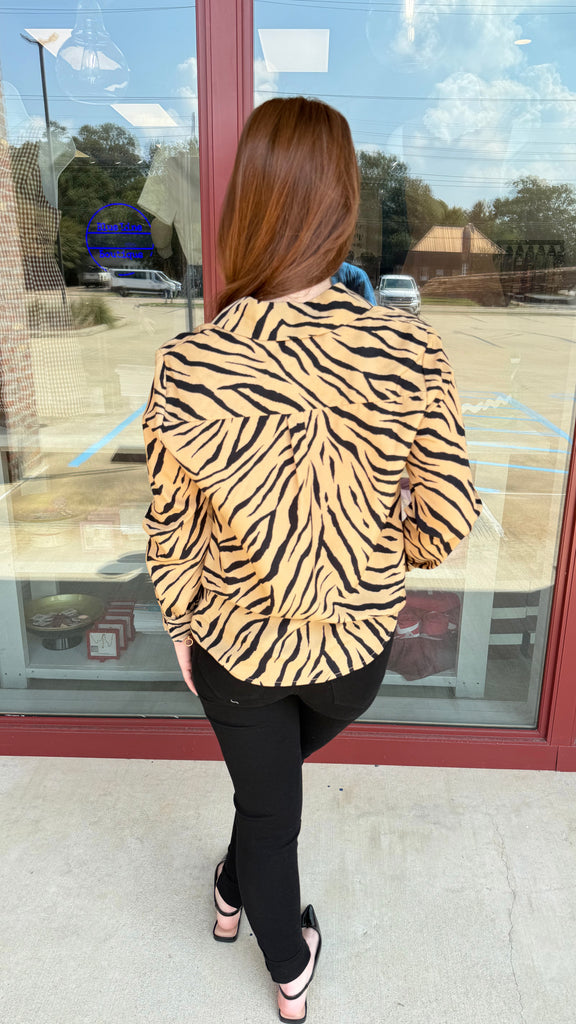 "Fierce Frequency" Tiger Print Button Down Long Sleeve Top