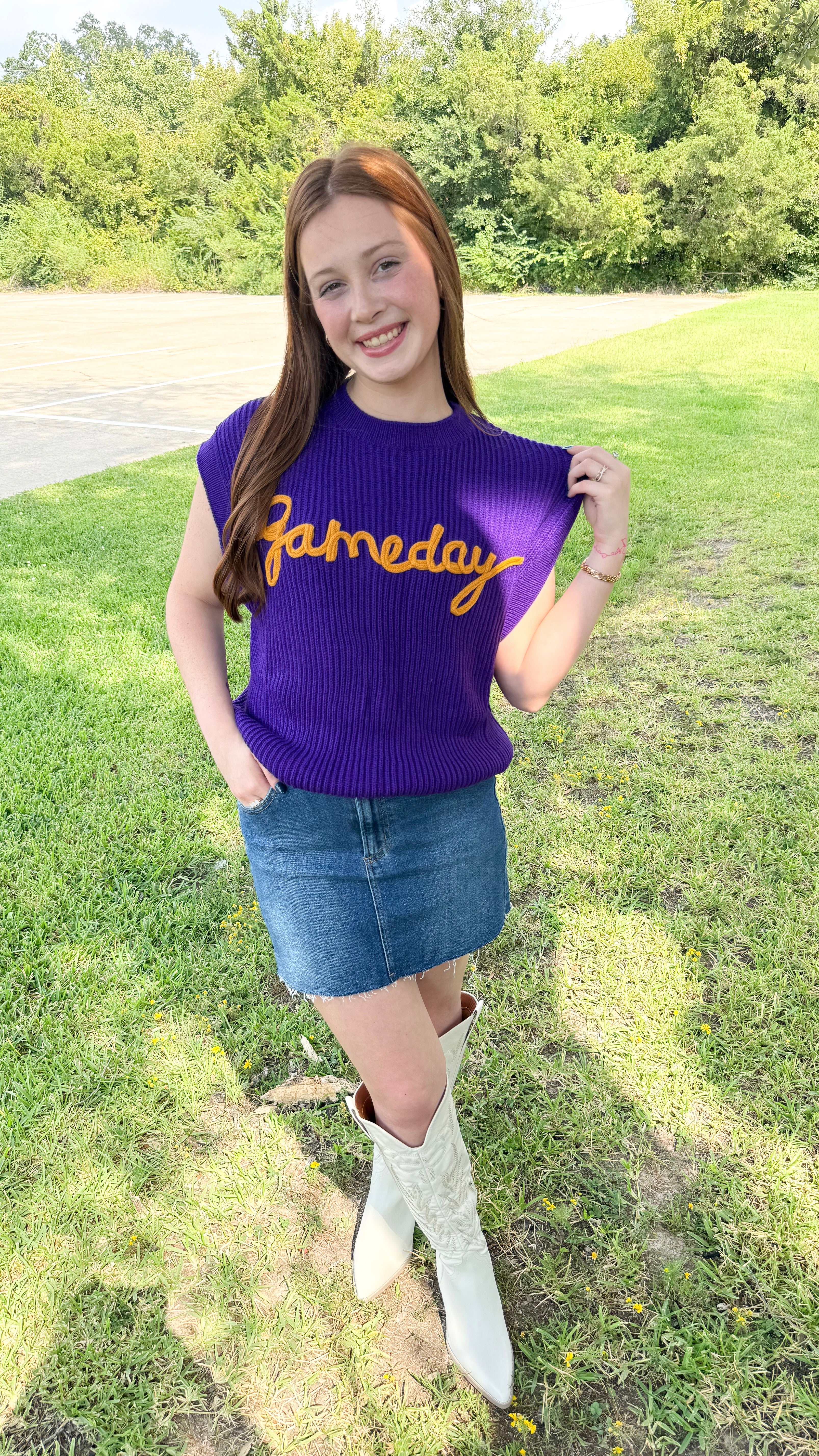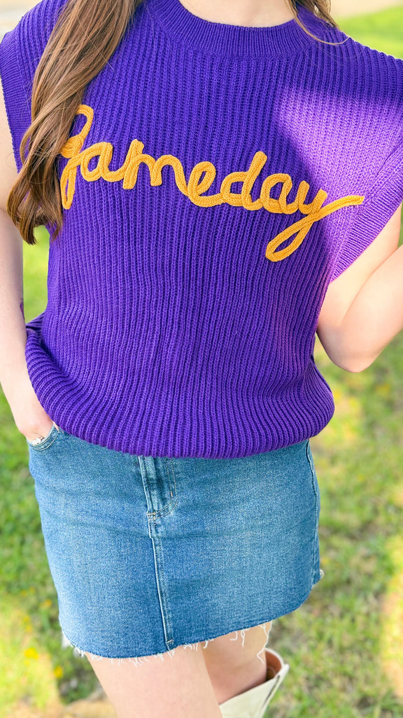 "Gameday" Embroidered Sleeveless Sweater Vest