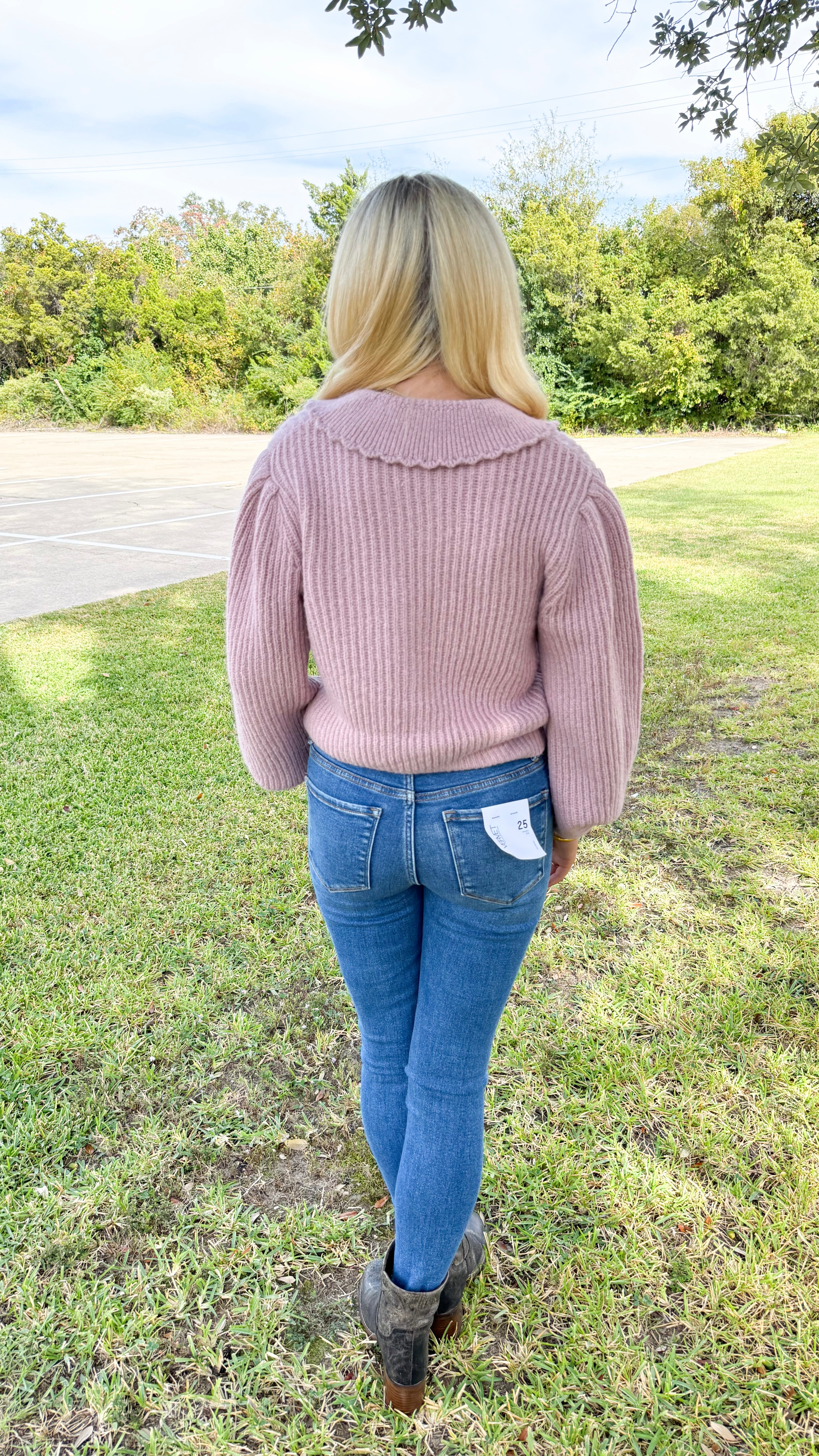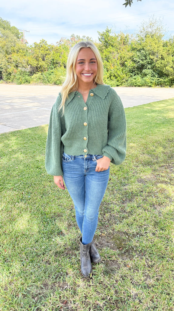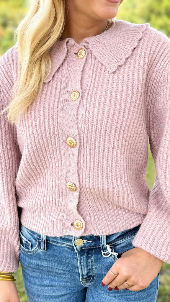 "Half Past" Chunky Collar Knitted Long Sleeve Cardigan
