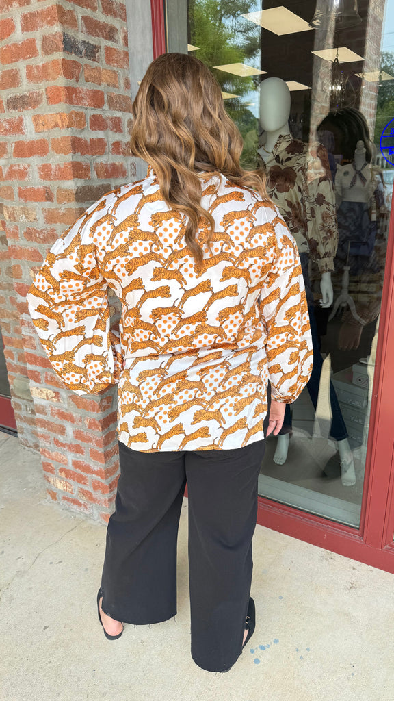 "Heart Of Mine" Tiger Print Long Sleeve Blouse Top