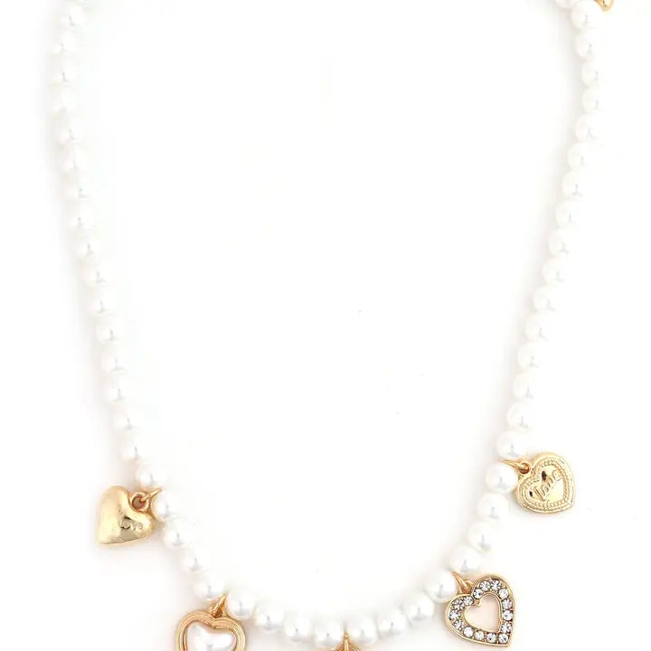 "Most Confident" Pearl Beaded with Heart Charms Necklace