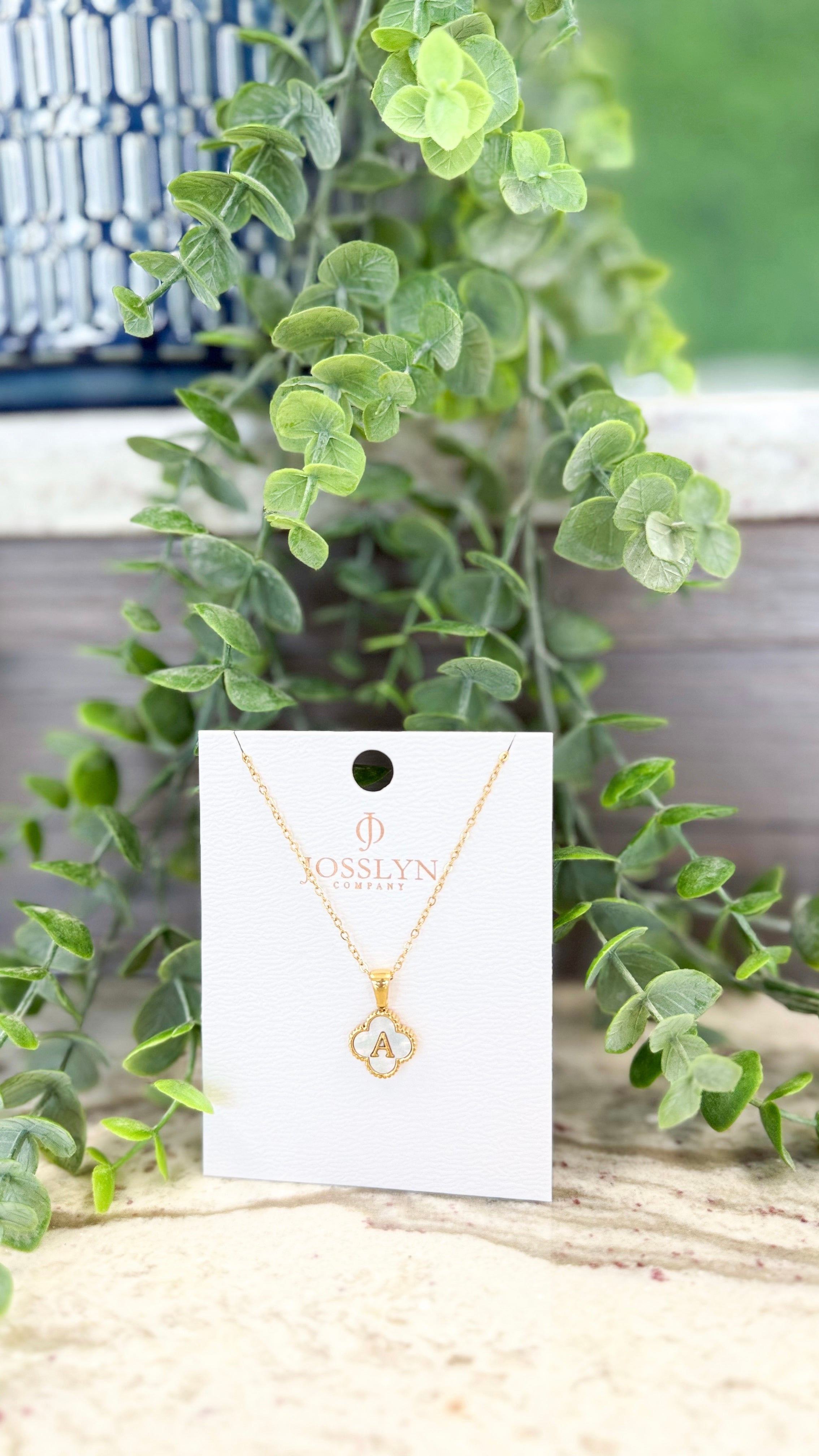 - Mother Of Pearl Clover Shaped Initial Necklace