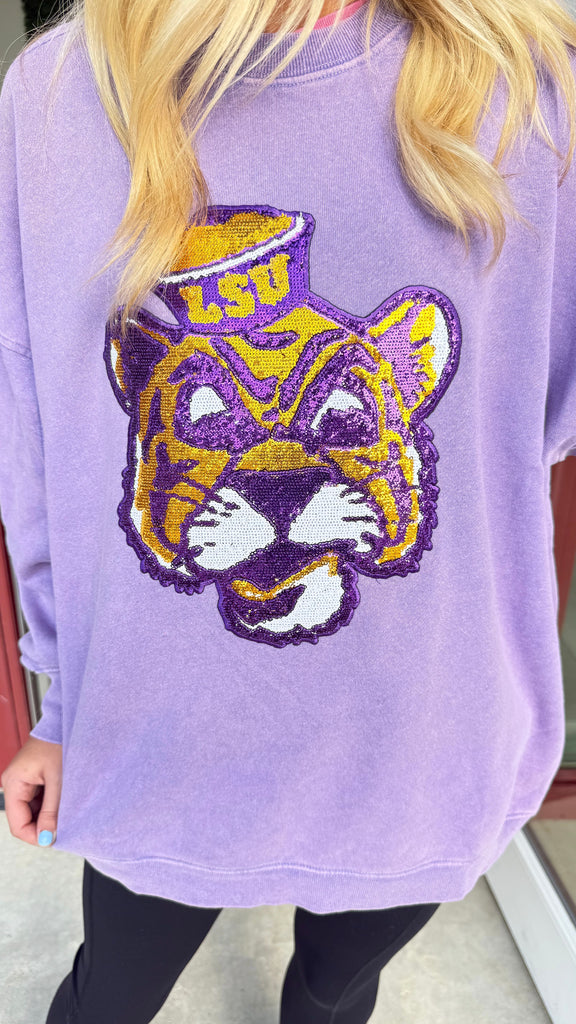 "Sequin Tiger" Oversized Long Sleeve Sweatshirt