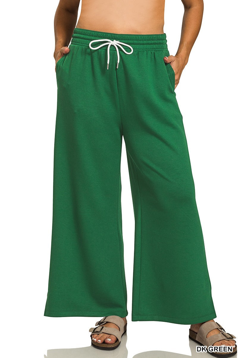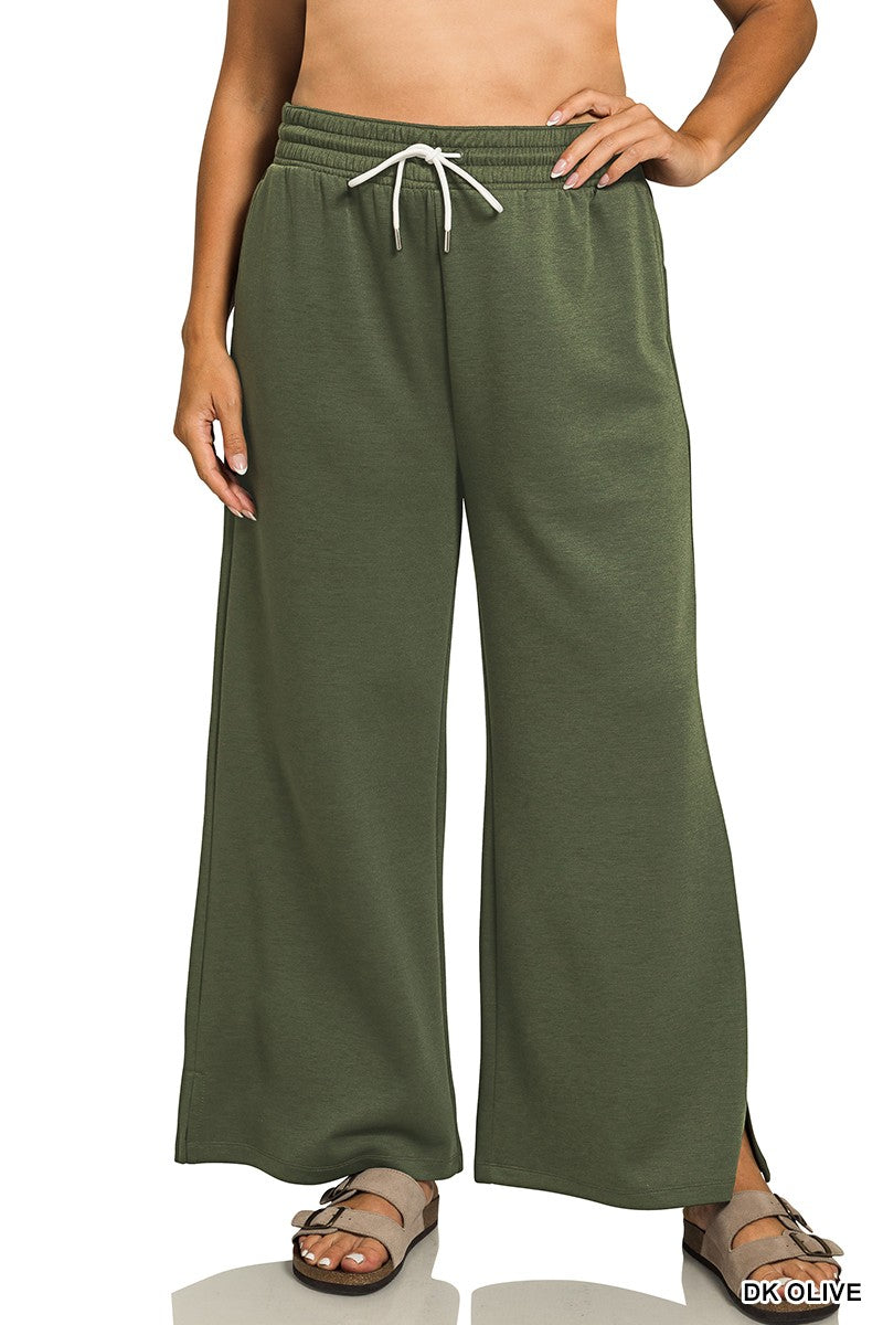 "Slow Days" Plus Scuba Drawstring Wide Leg Pants