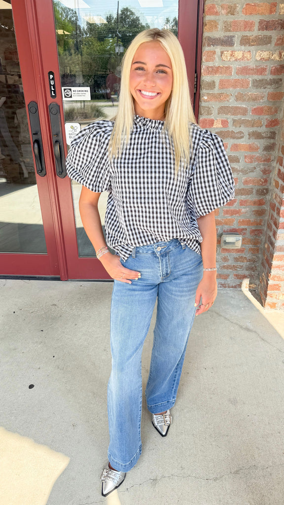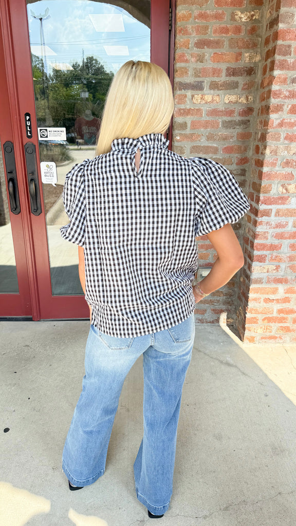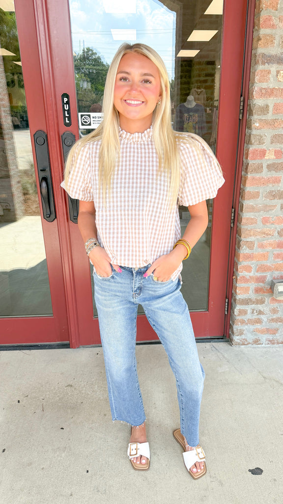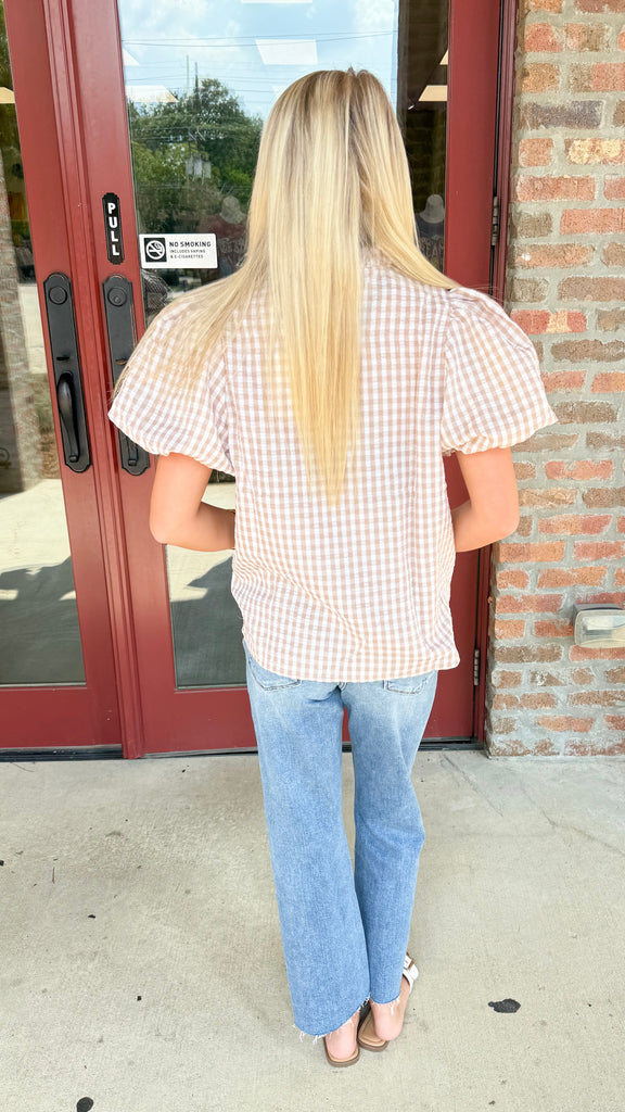"Sweet Like That" Gingham Print Puff Sleeve Top