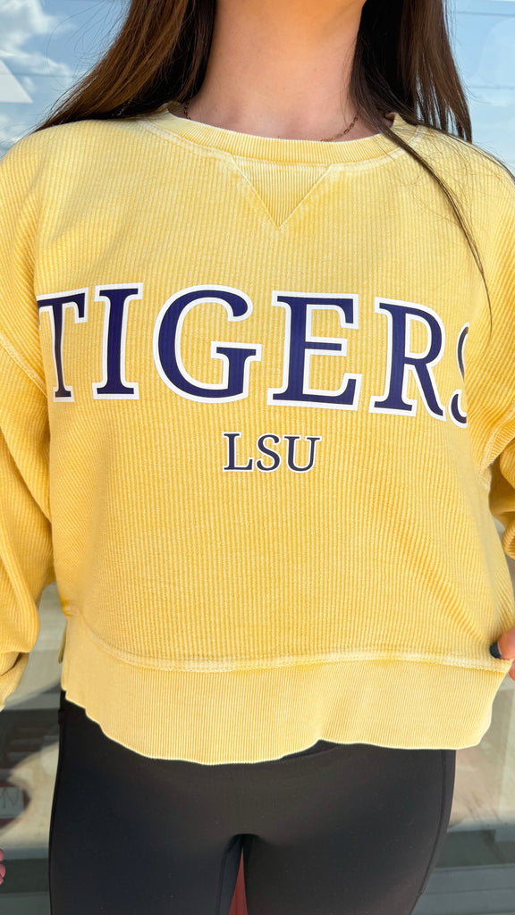 "TIGERS LSU" Cropped Corded Graphic Sweatshirt