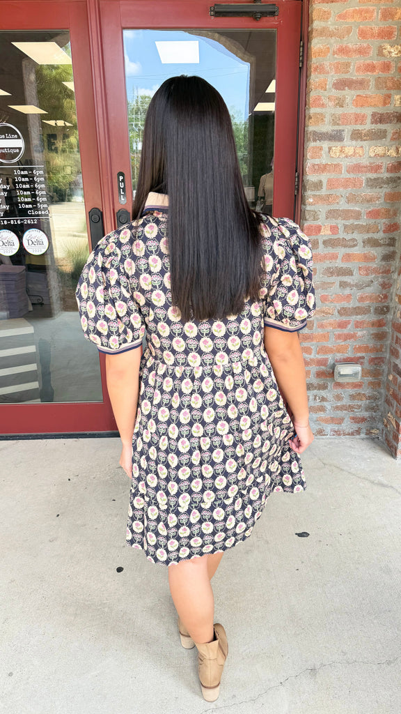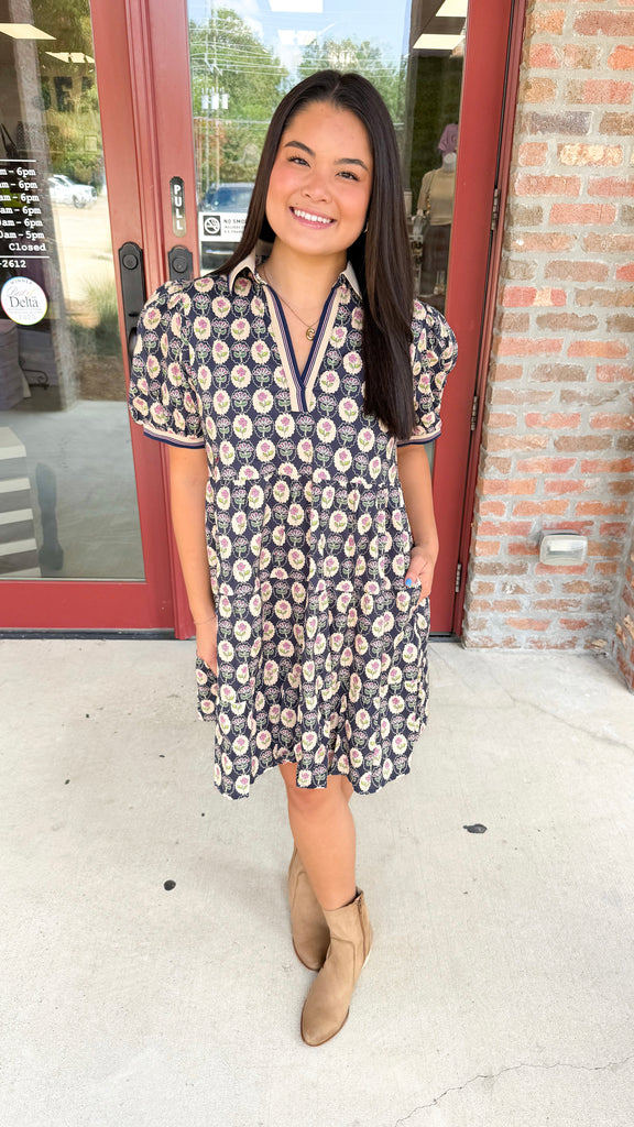 "Walk By Me" Contrast Floral Short Sleeve Mini Dress