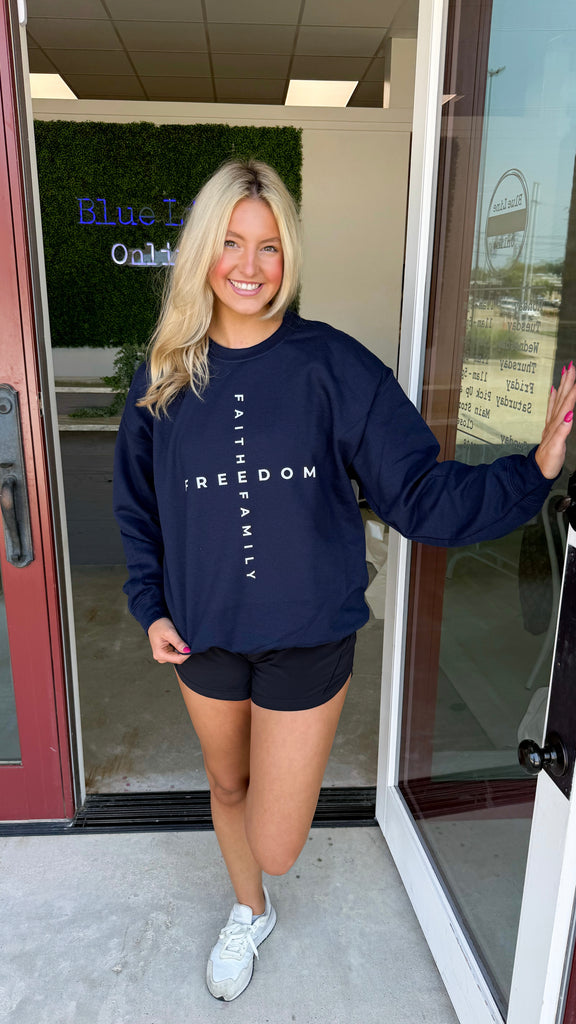 "Freedom Faith Family" Plus Graphic Sweatshirt