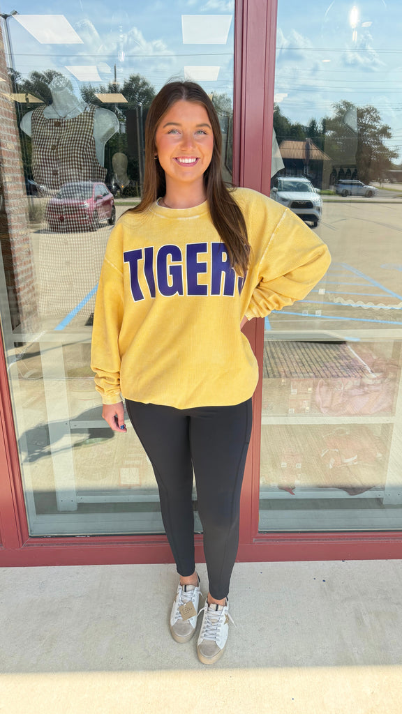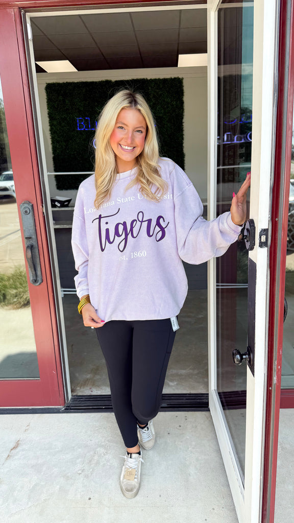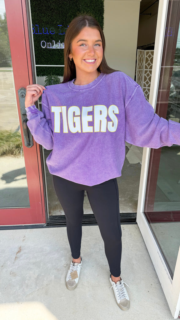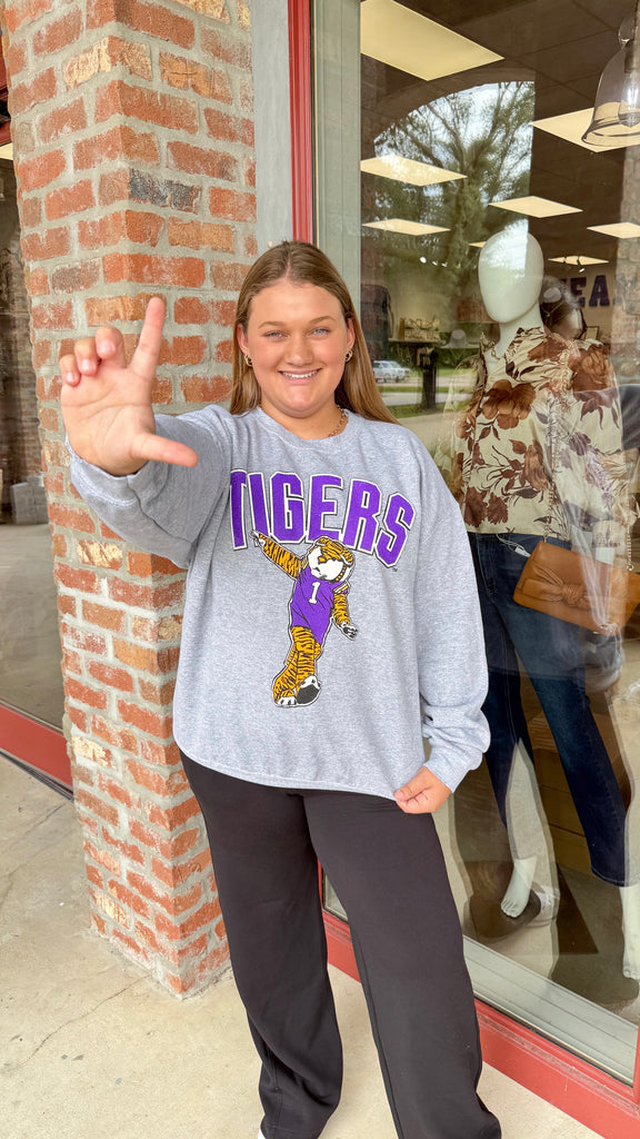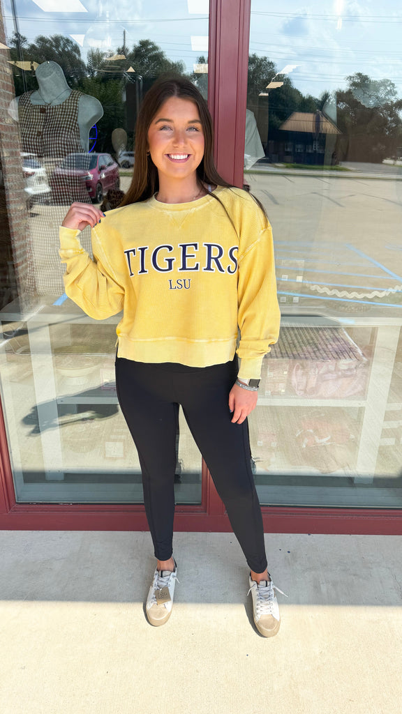 "TIGERS LSU" Cropped Corded Graphic Sweatshirt