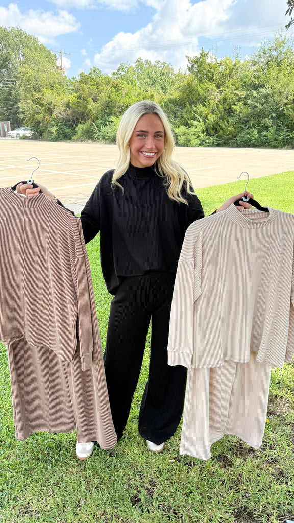 "Just A Girl" Ribbed Mock Neck Long Sleeve Tee & Pants Set