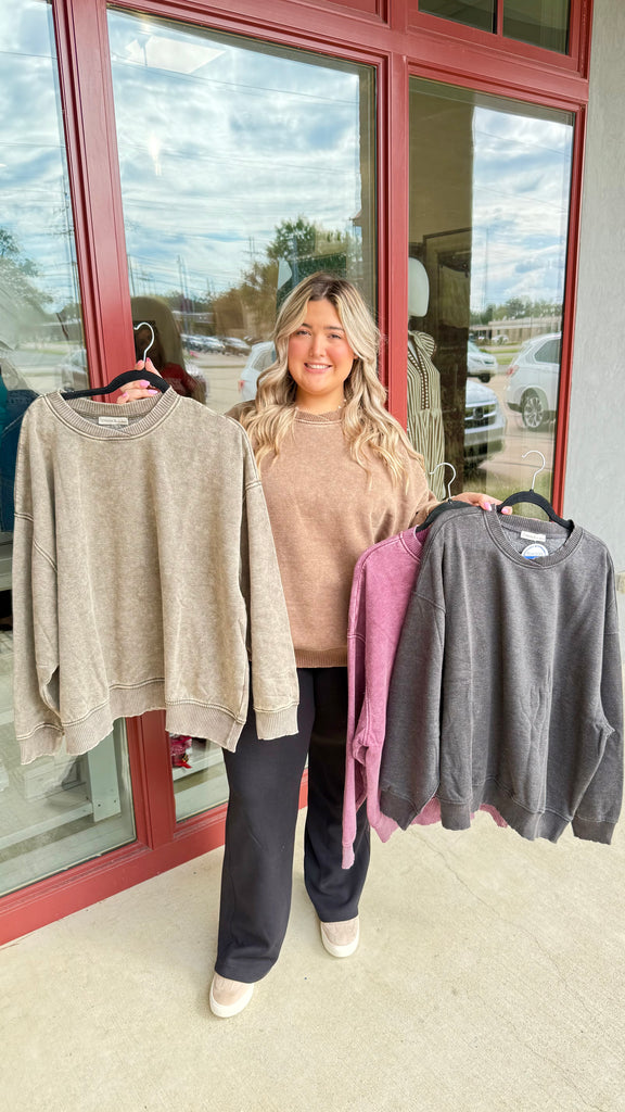 "Small Town Girl" Plus Acid Wash Oversized Fleece Pullover