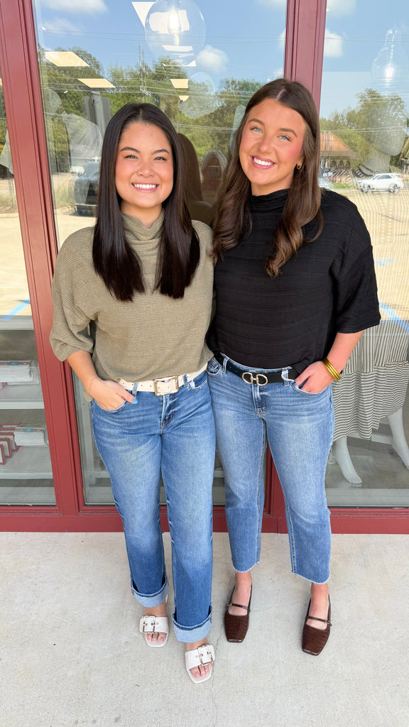 "Best Of It All" Textured Mock Neck Half Sleeve Top