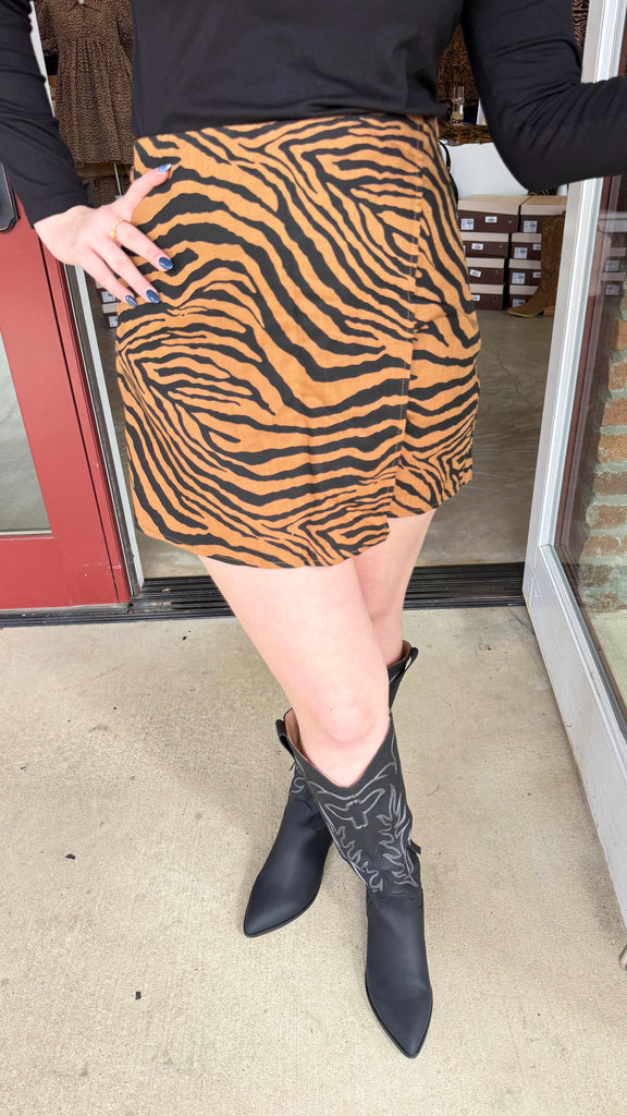 "Claws Out" Tiger Print Asymmetric Mini Wrap Skort