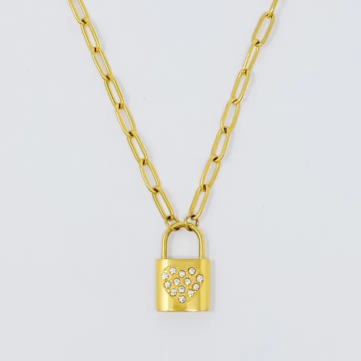 Ellison + Young "On The Line" Heart Lock Chain Necklace