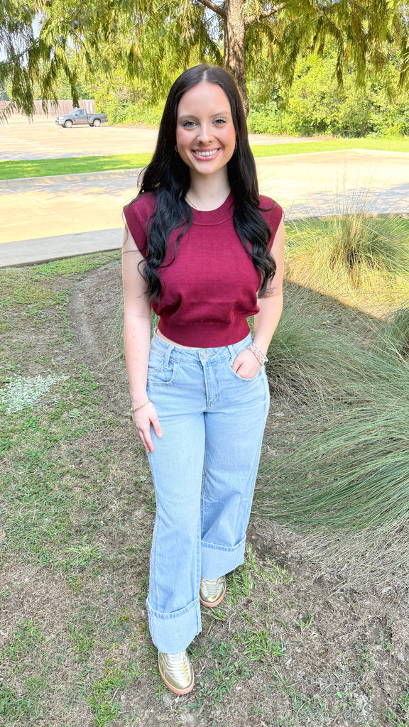 "Almost Time" Rib Neck Cropped Sleeveless Top
