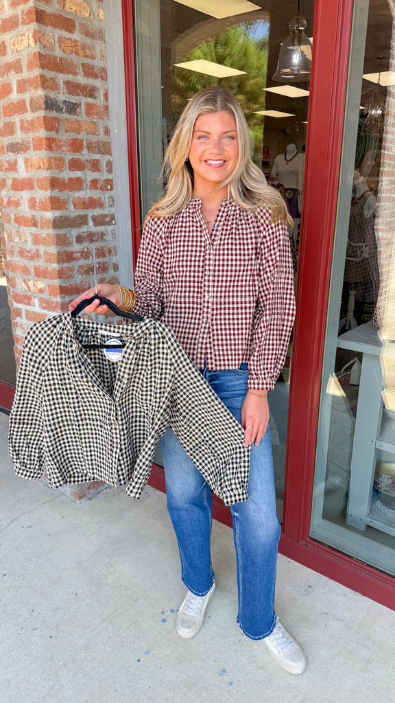 "Play The Game" Button Down Checkered Long Sleeve Top