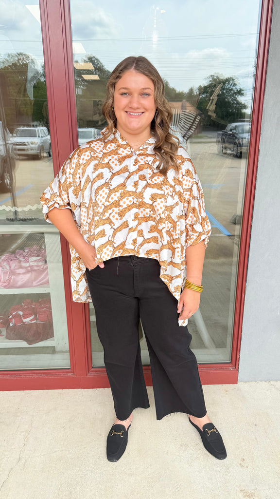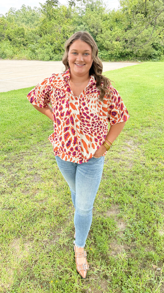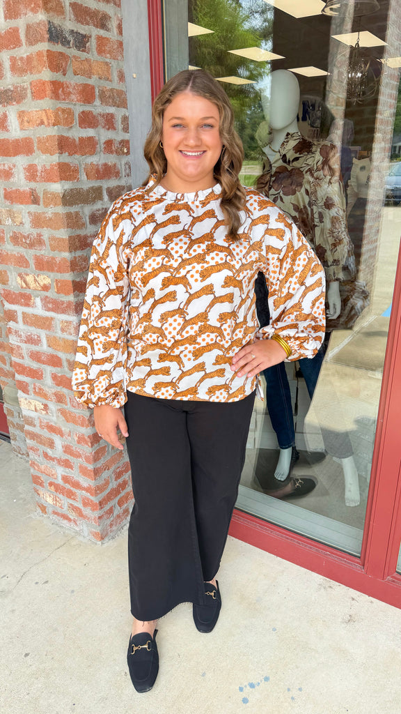 "Heart Of Mine" Tiger Print Long Sleeve Blouse Top