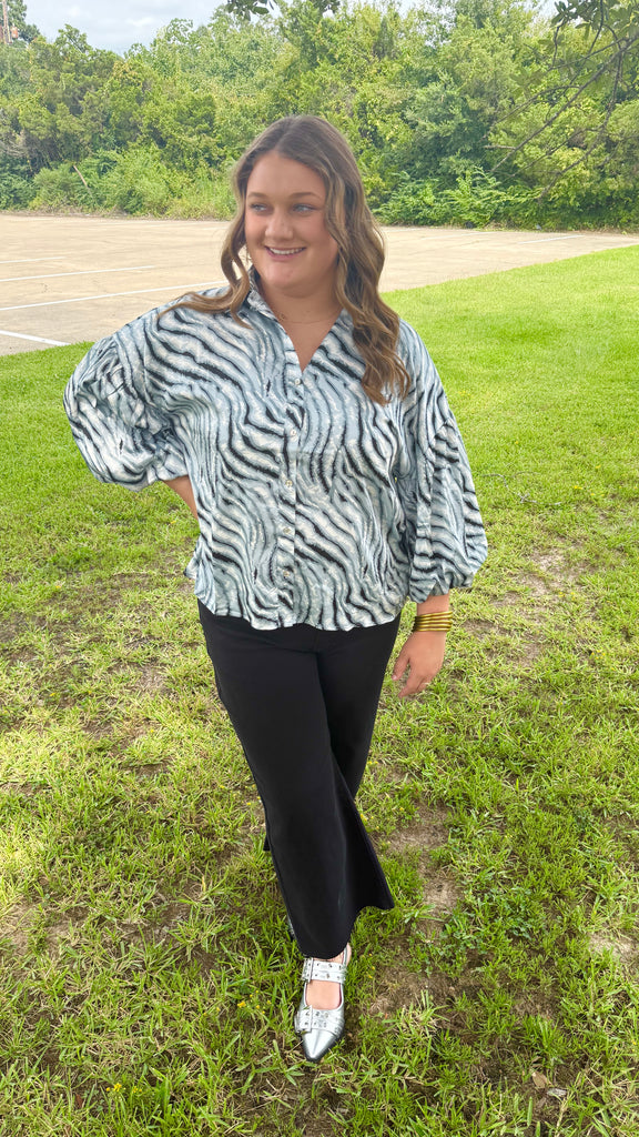 "Feeling Like Love" Zebra Print Button Up Long Sleeve Top