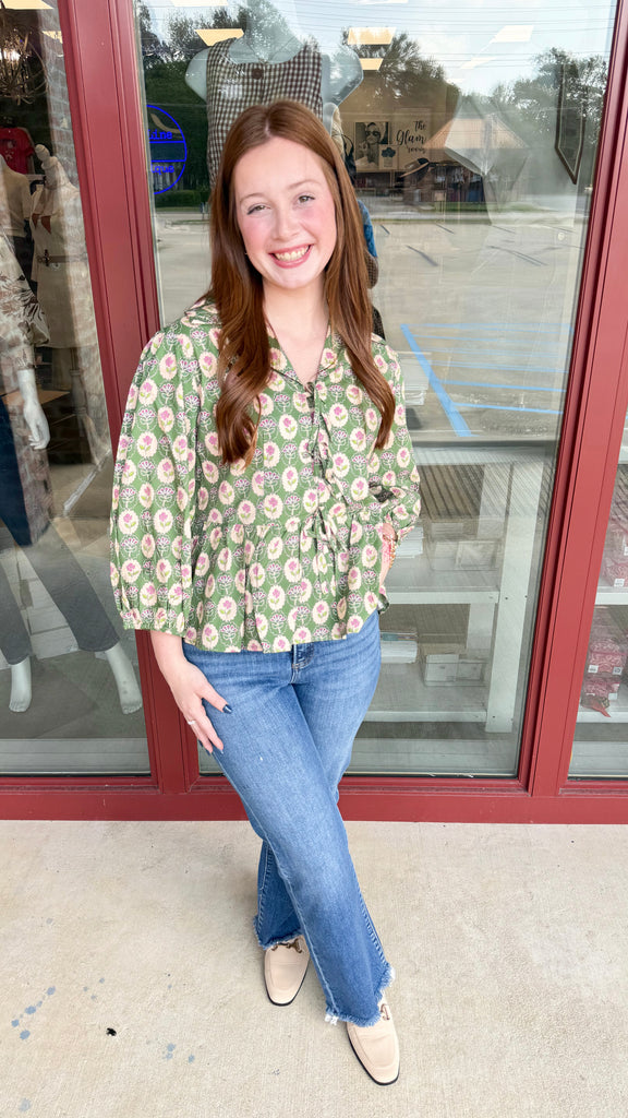 "Good To Get Away" Flower Print Peplum Long Sleeve Top