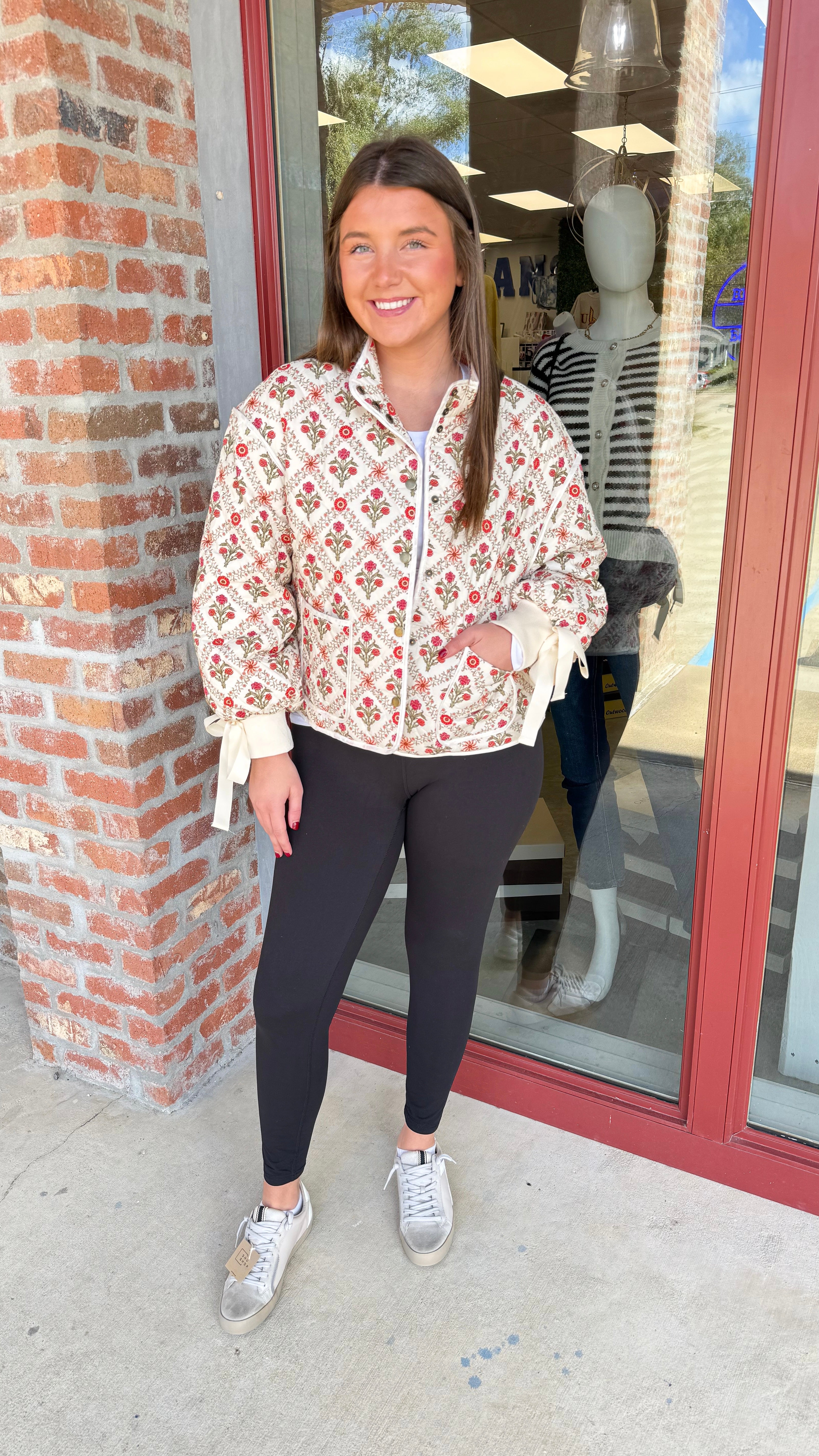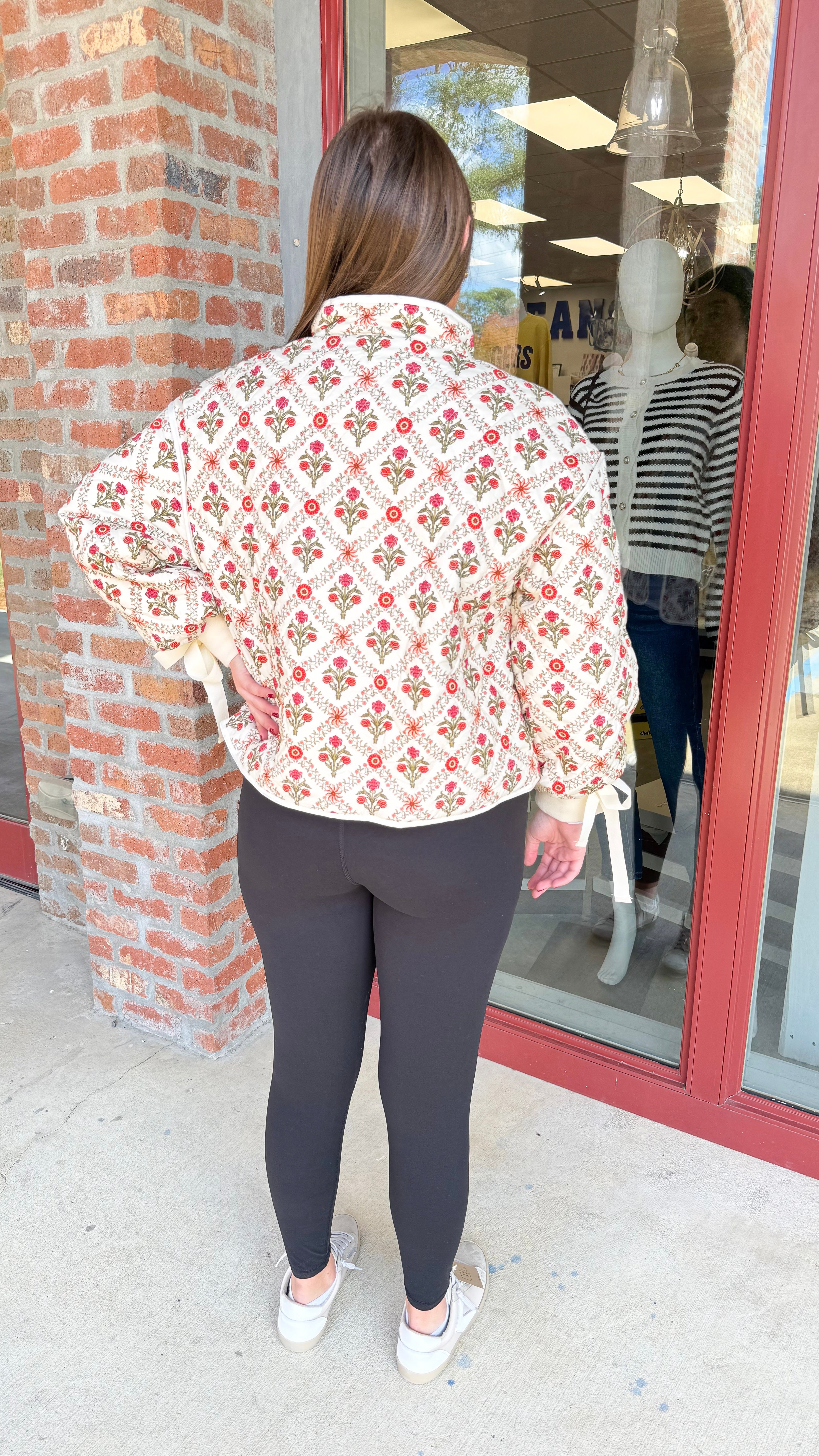 "Blooming Morning" Floral Quilted Bow Detail Jacket