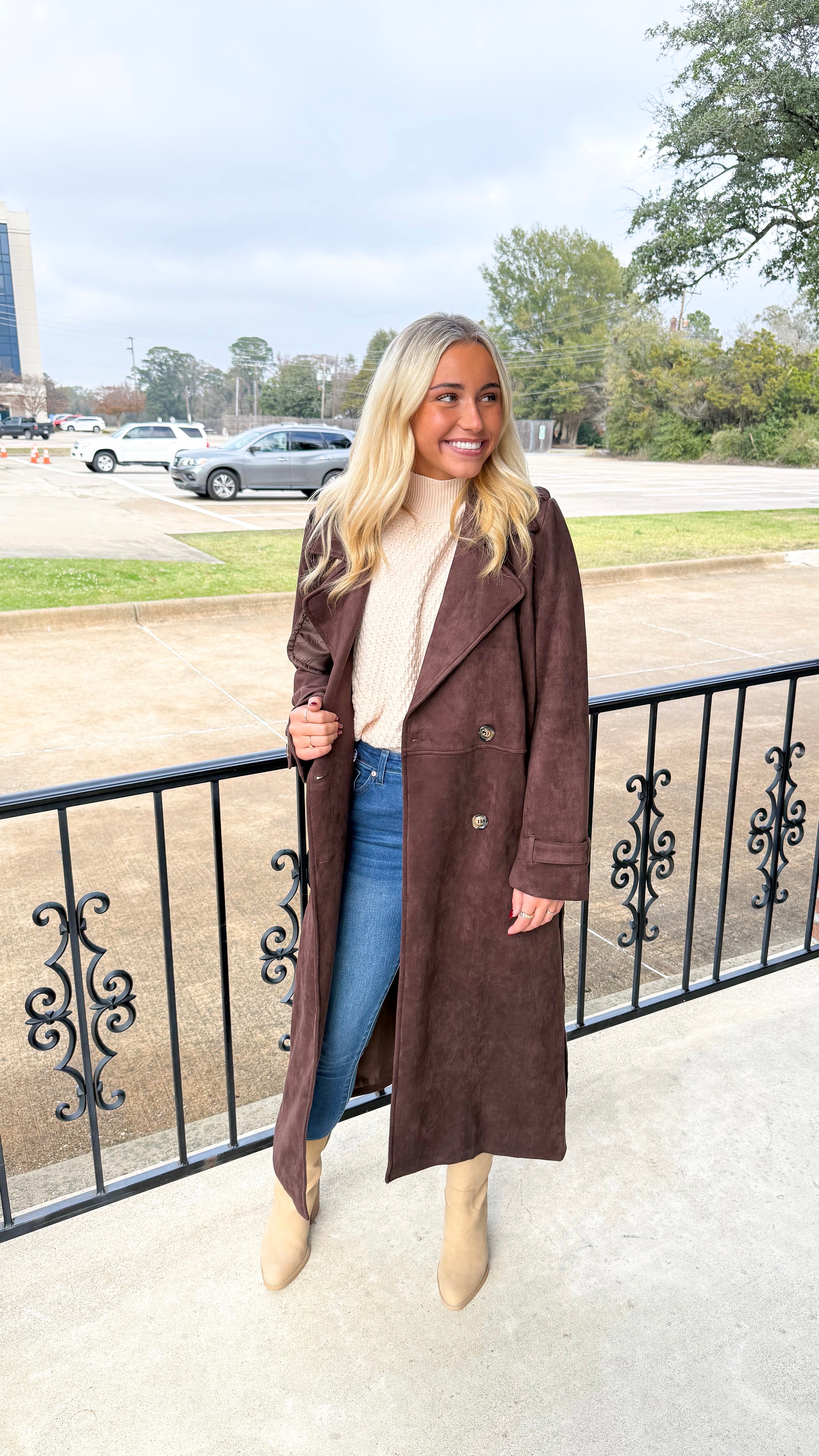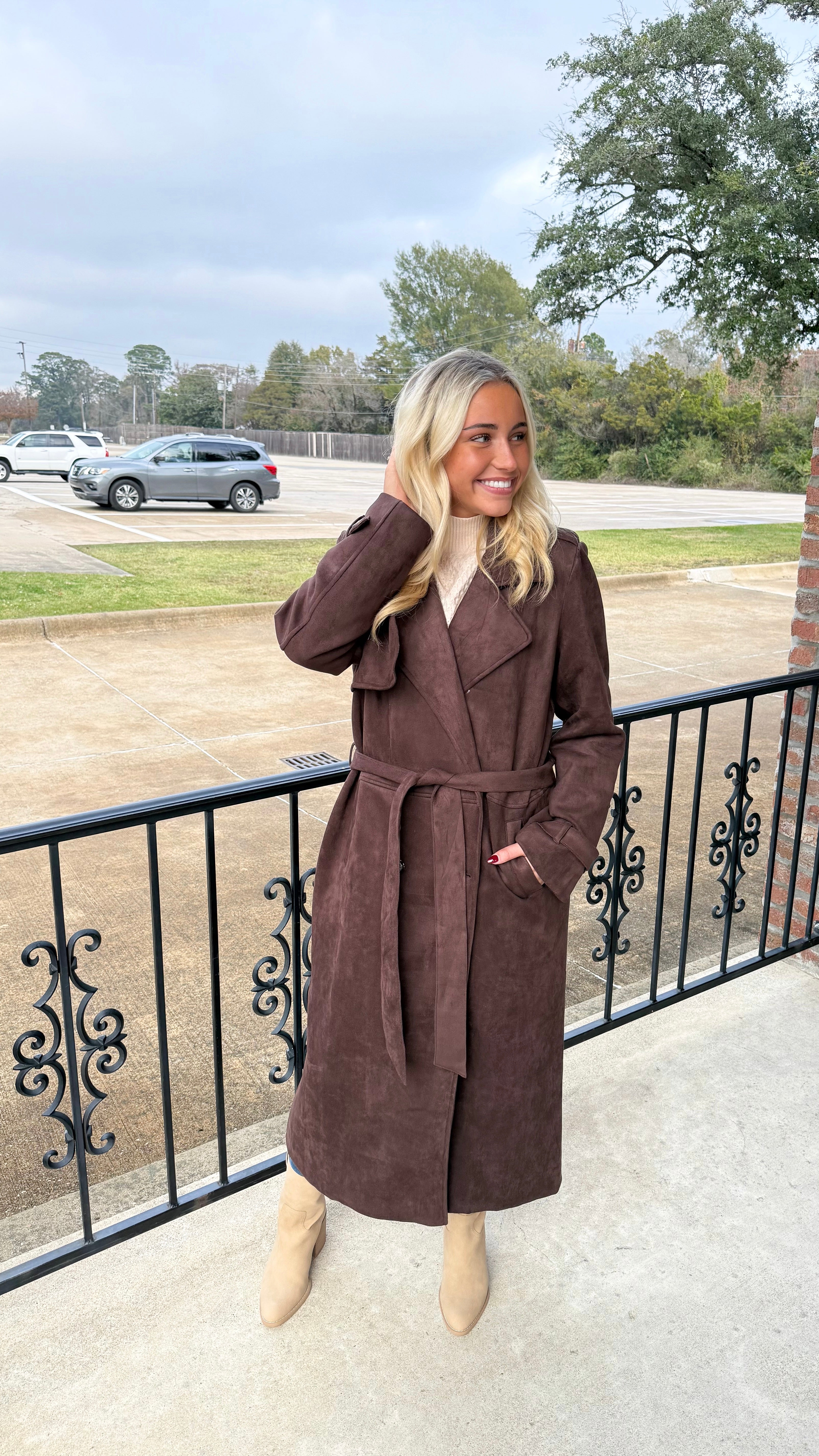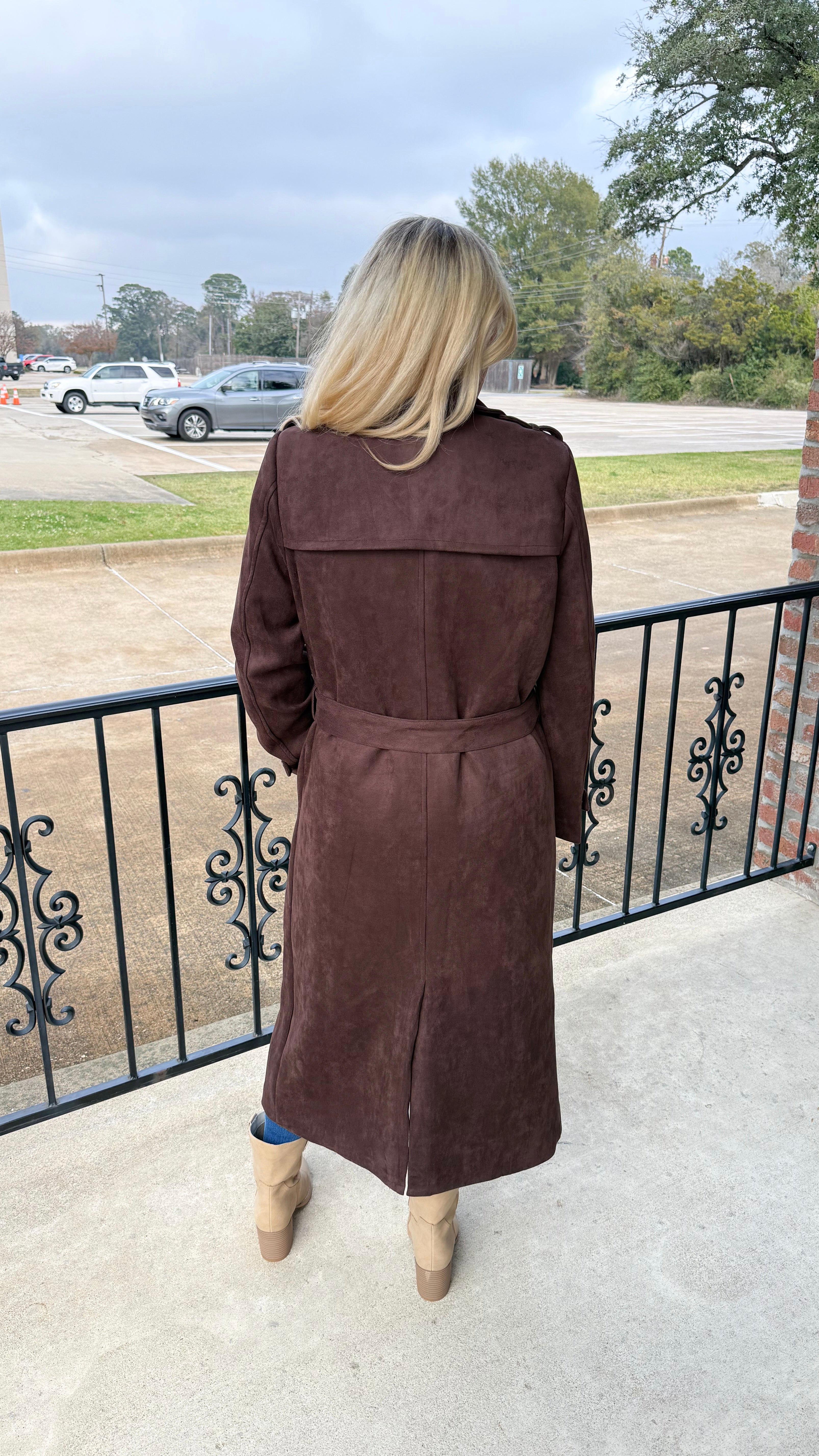 "Too Glam" Suede Long Trench Coat Jacket