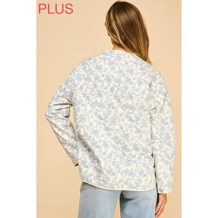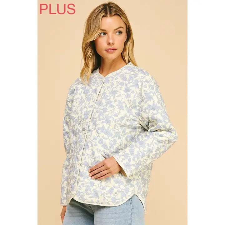 "What Matters" Plus Floral Snap Button Quilted Jacket