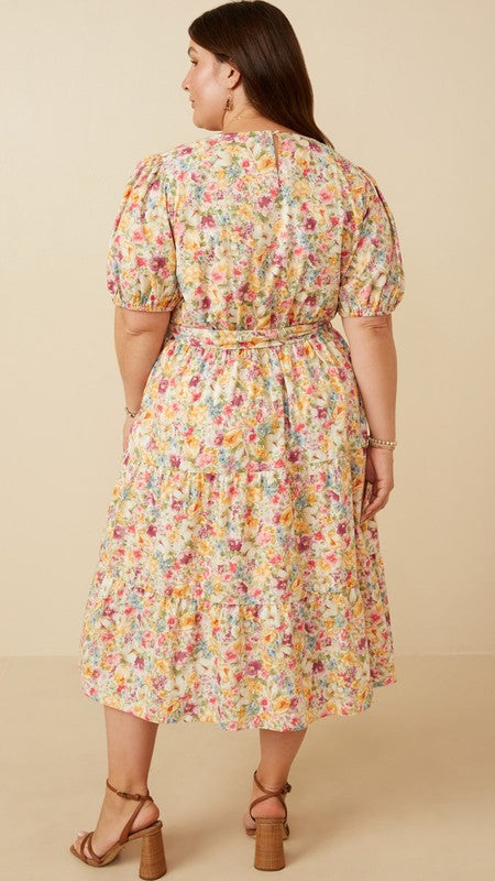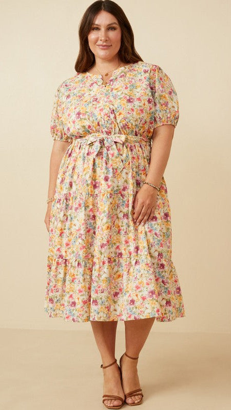 "Save It" Plus Floral Print Poplin Midi Dress