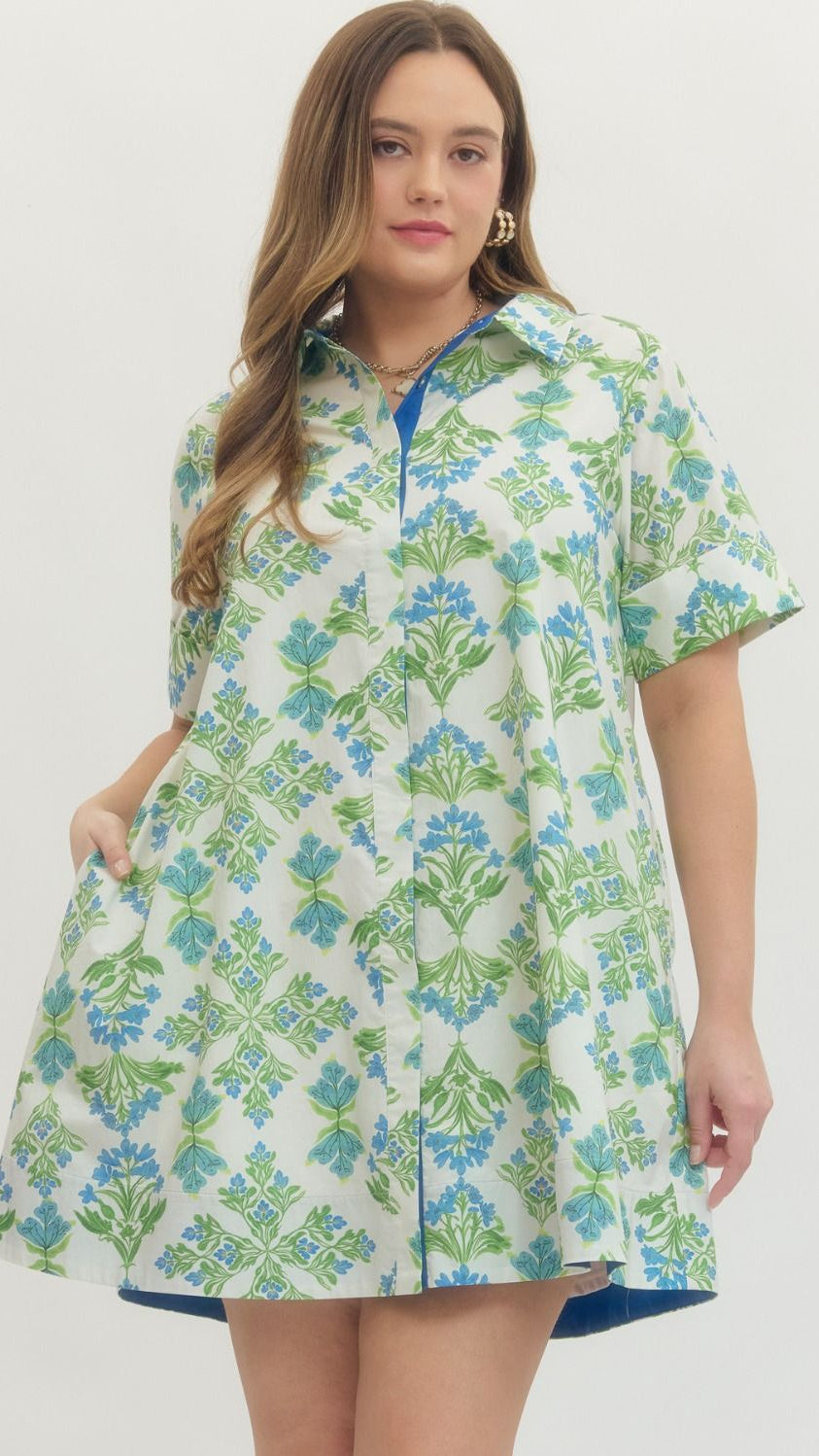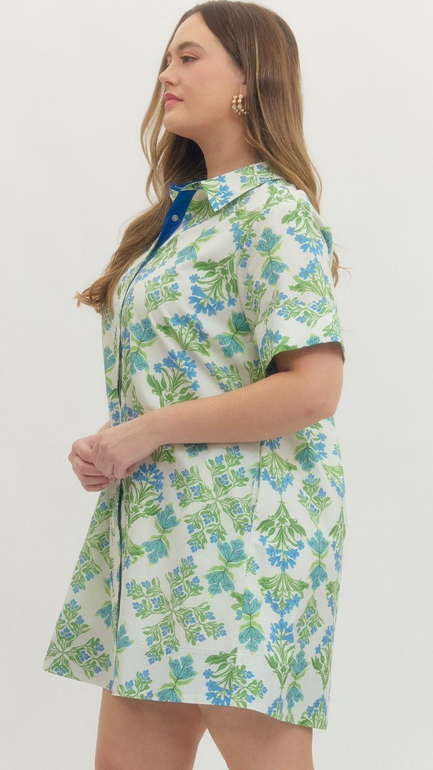 "You're The Best" Plus Button Down Short Sleeve Mini Dress
