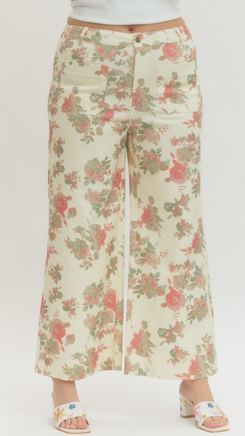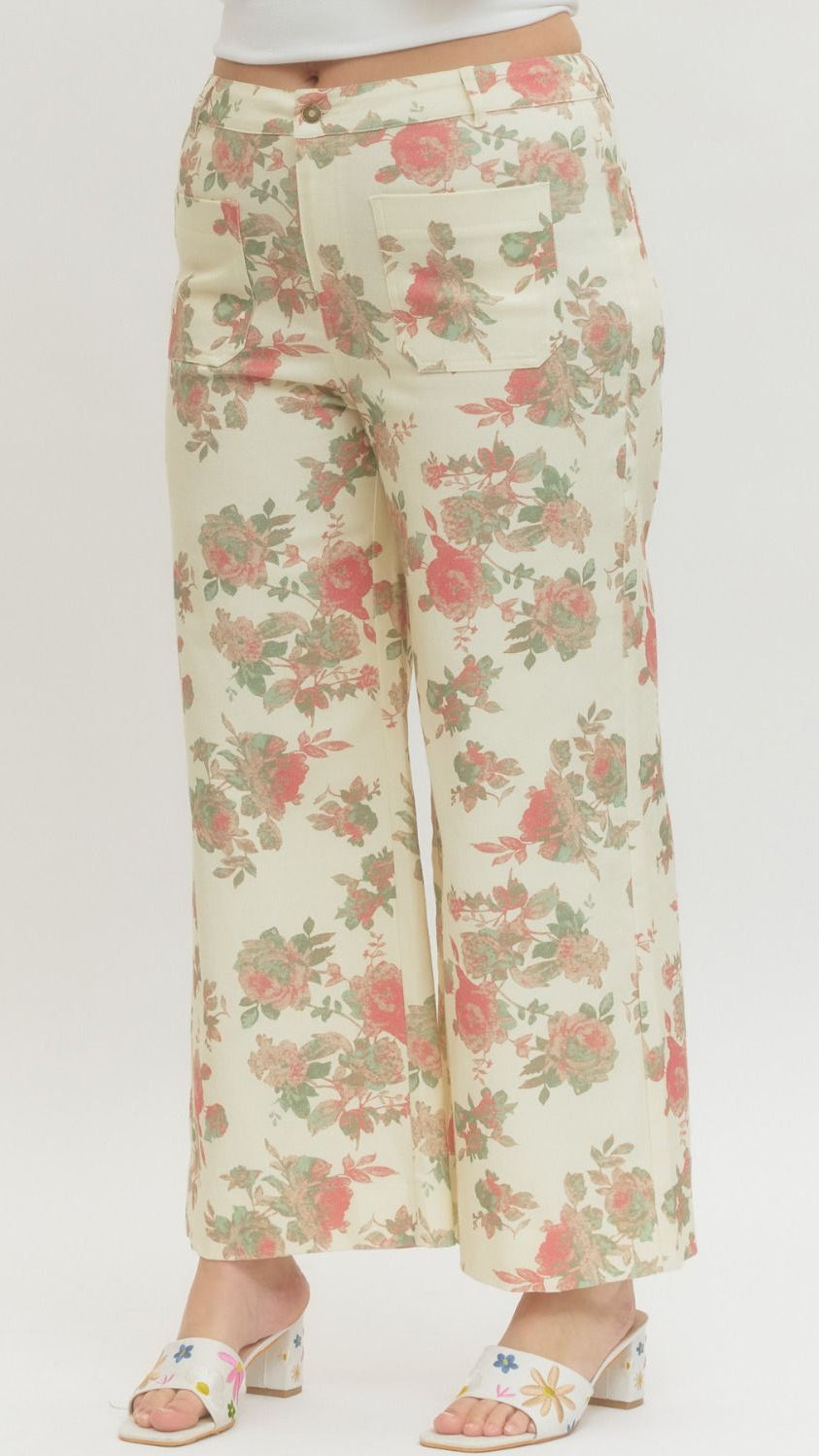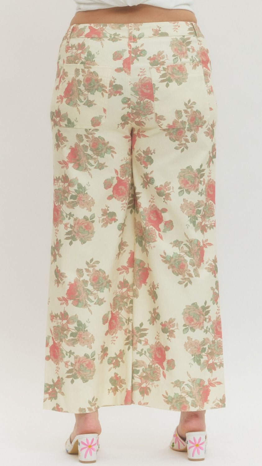 "The Perfect Pair" Plus Floral Mid Rise Ankle Length Pants