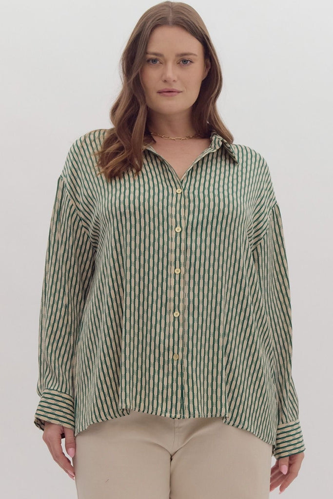 "Best That I Can" Plus Collared Button Up Long Sleeve Top