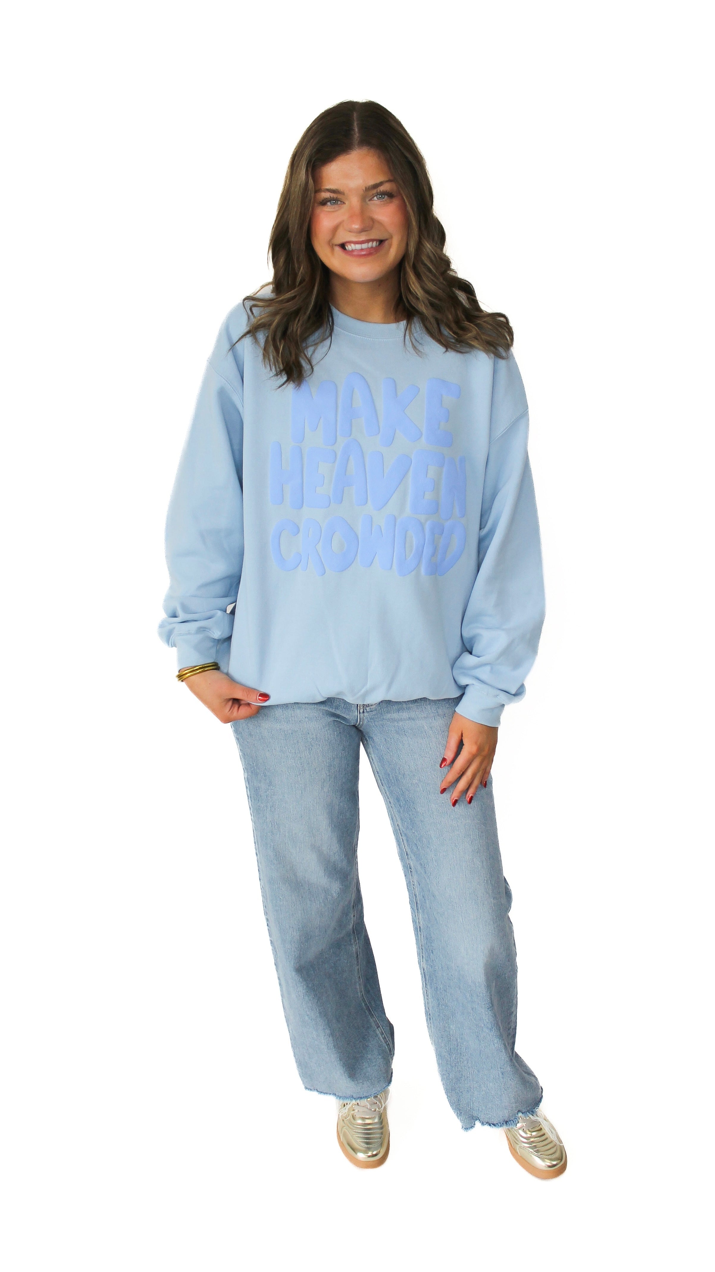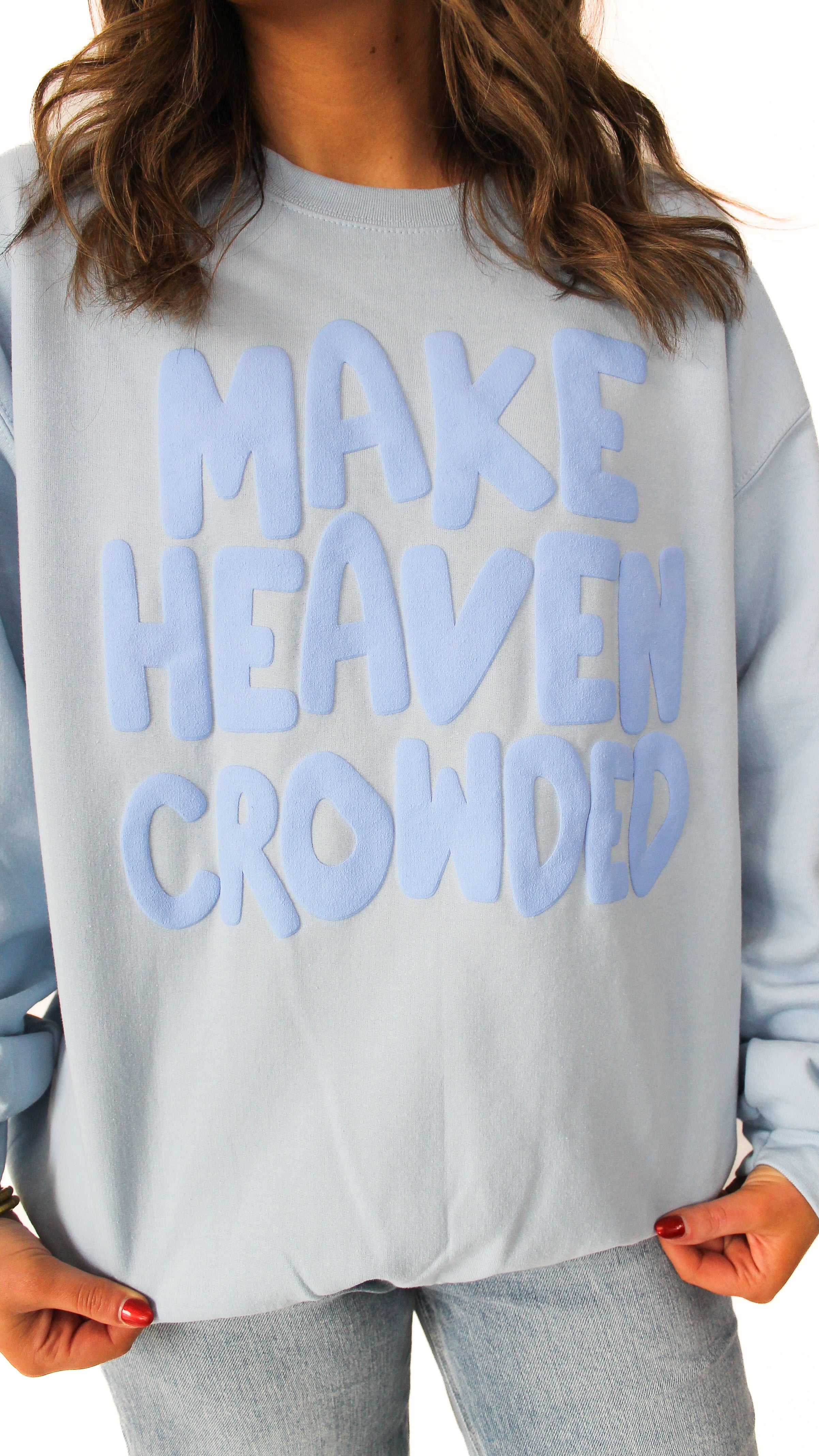 "Make Heaven Crowded" Plus Crew Neck Graphic Long Sleeve Sweatshirt