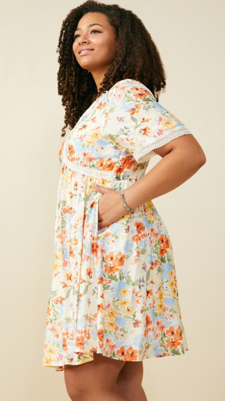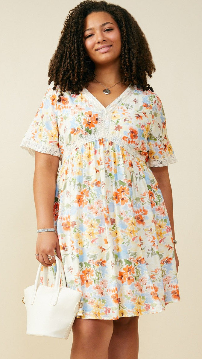 "Own The Day" Plus Lace Trimmed Floral Dress