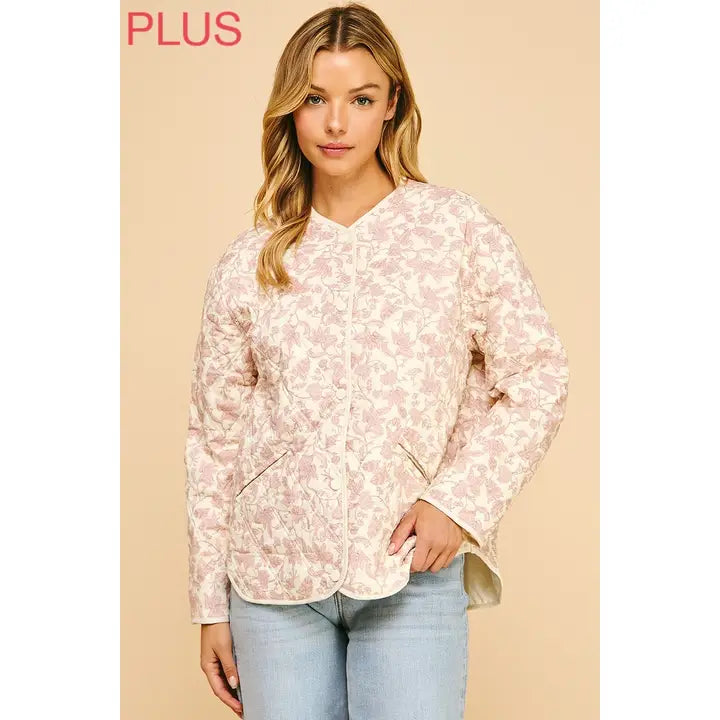 "What Matters" Plus Floral Snap Button Quilted Jacket