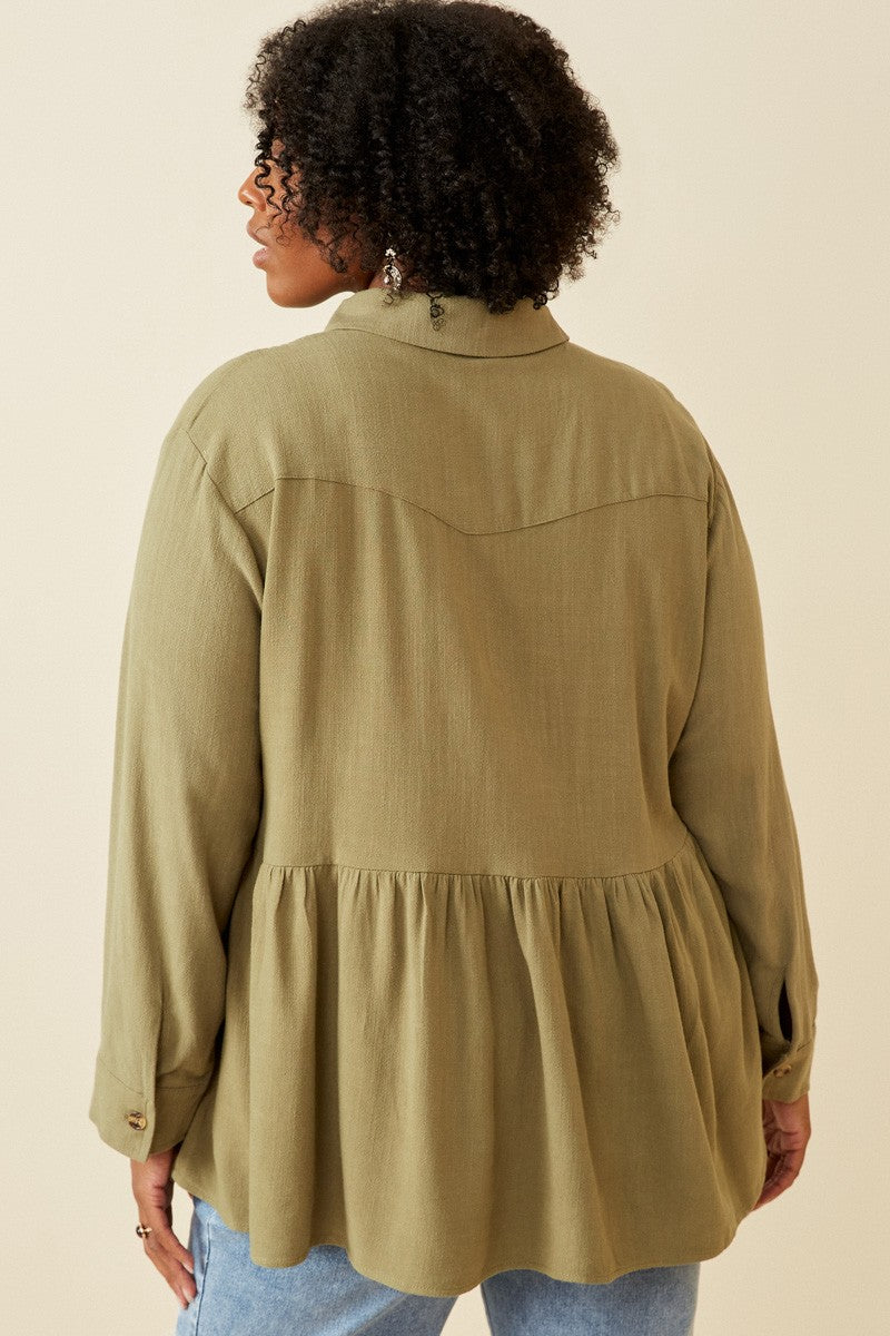 "Above All Names" Plus Linen Peplum Button Up Top