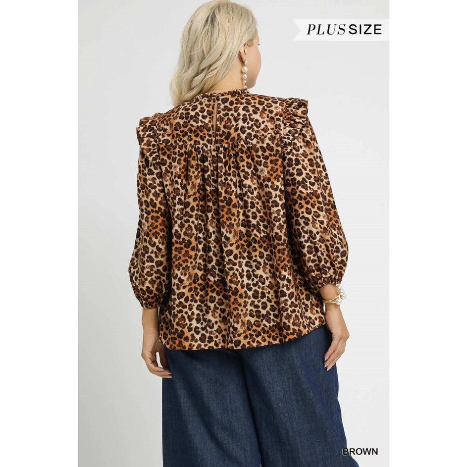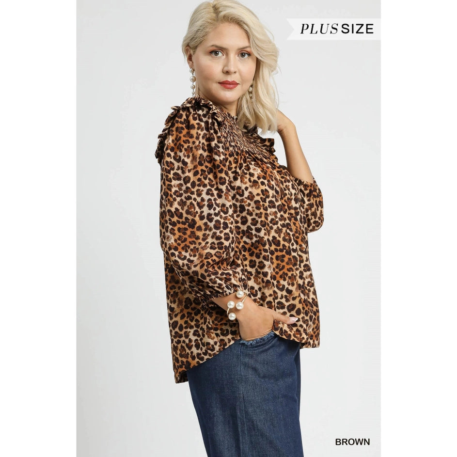 "Animal Behavior" Plus Leopard Smocked Blouse Top