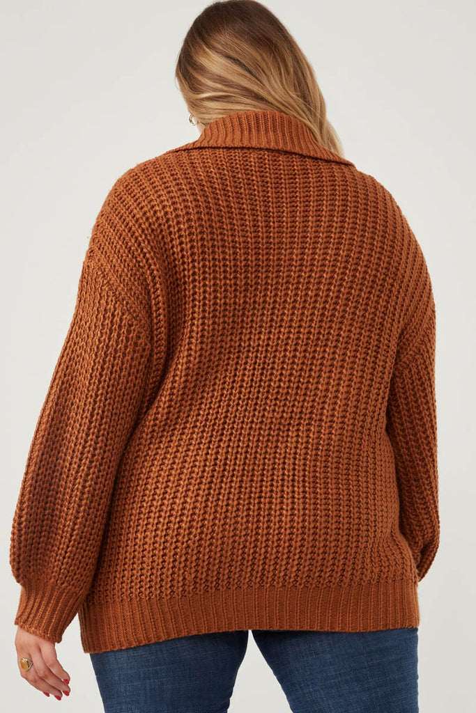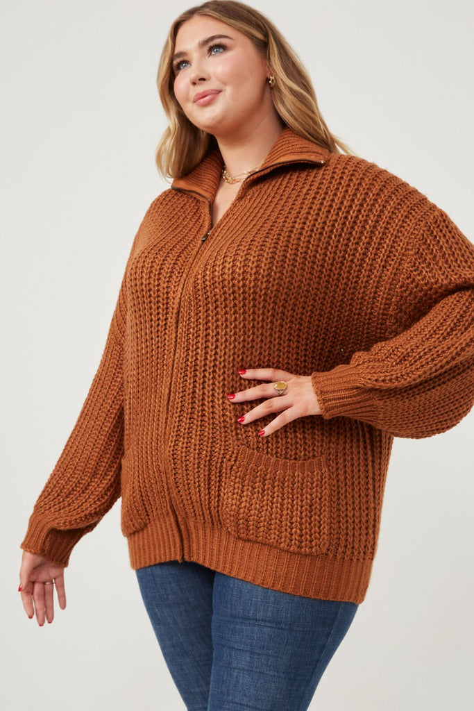 "Change My Life" Plus Collared Zip Up Knit Jacket