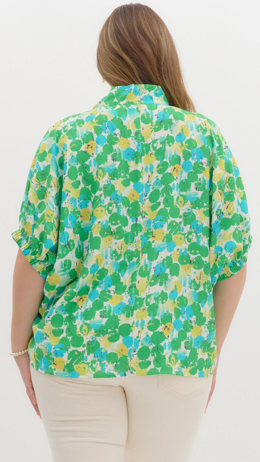 "Effortless Look" Plus Contrast Split Neck Abstract Top