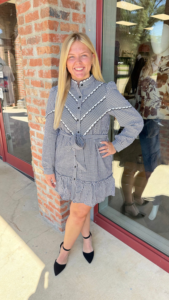 "Checks & Dreams" Gingham Ruffle Button Up Mini Dress