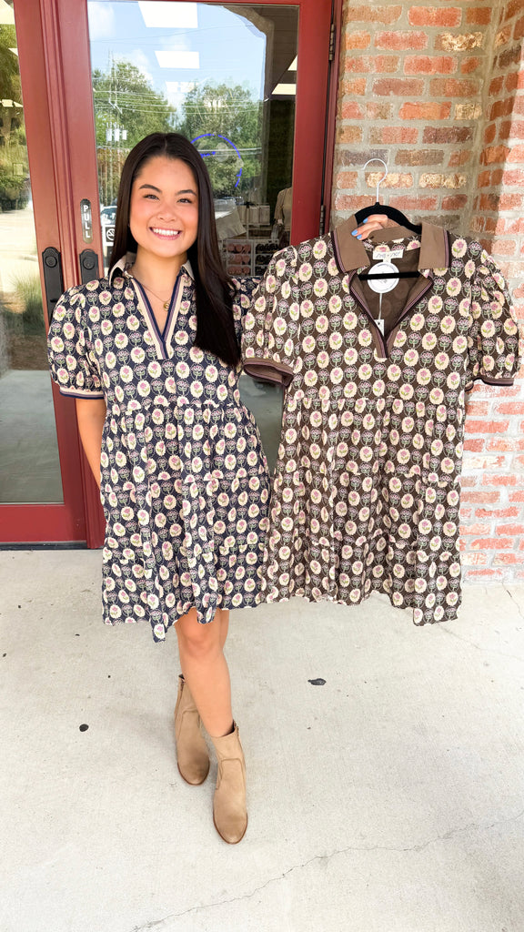 "Walk By Me" Contrast Floral Short Sleeve Mini Dress