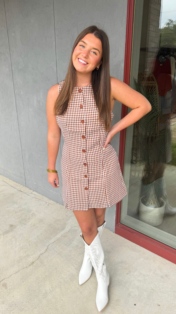 "Let's Have Brunch" Gingham Checkered Tank Mini Dress