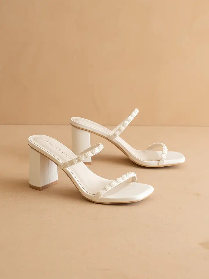 "Phoebe Lane" White Beaded Two Strap Block Heel