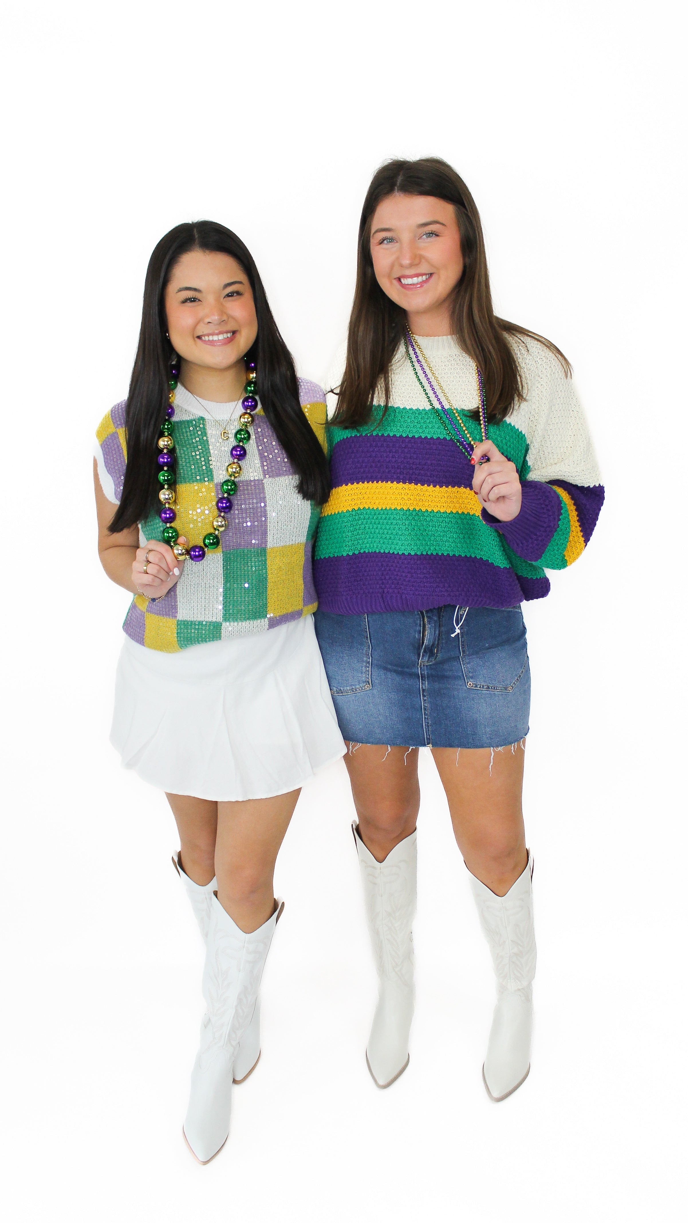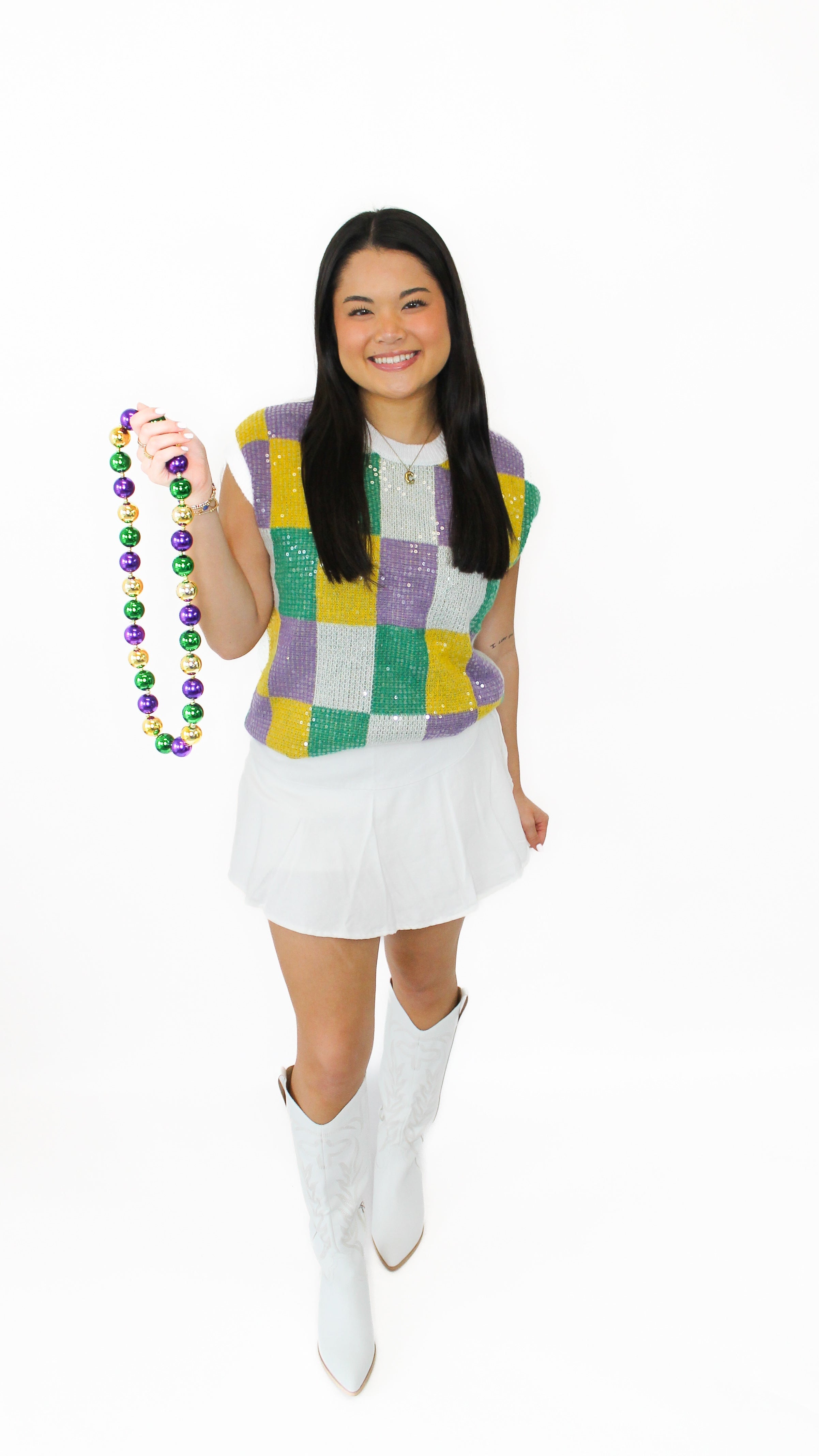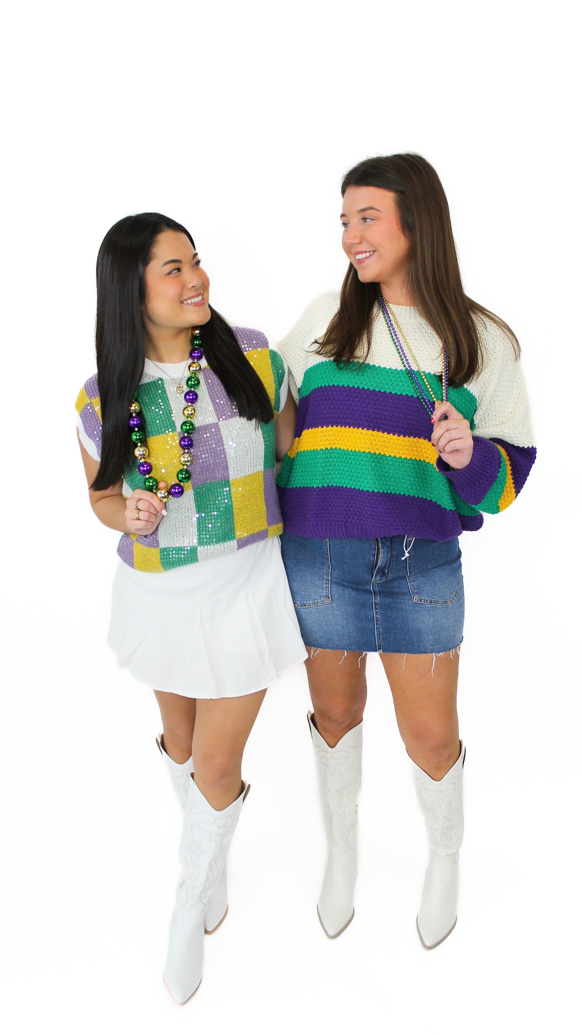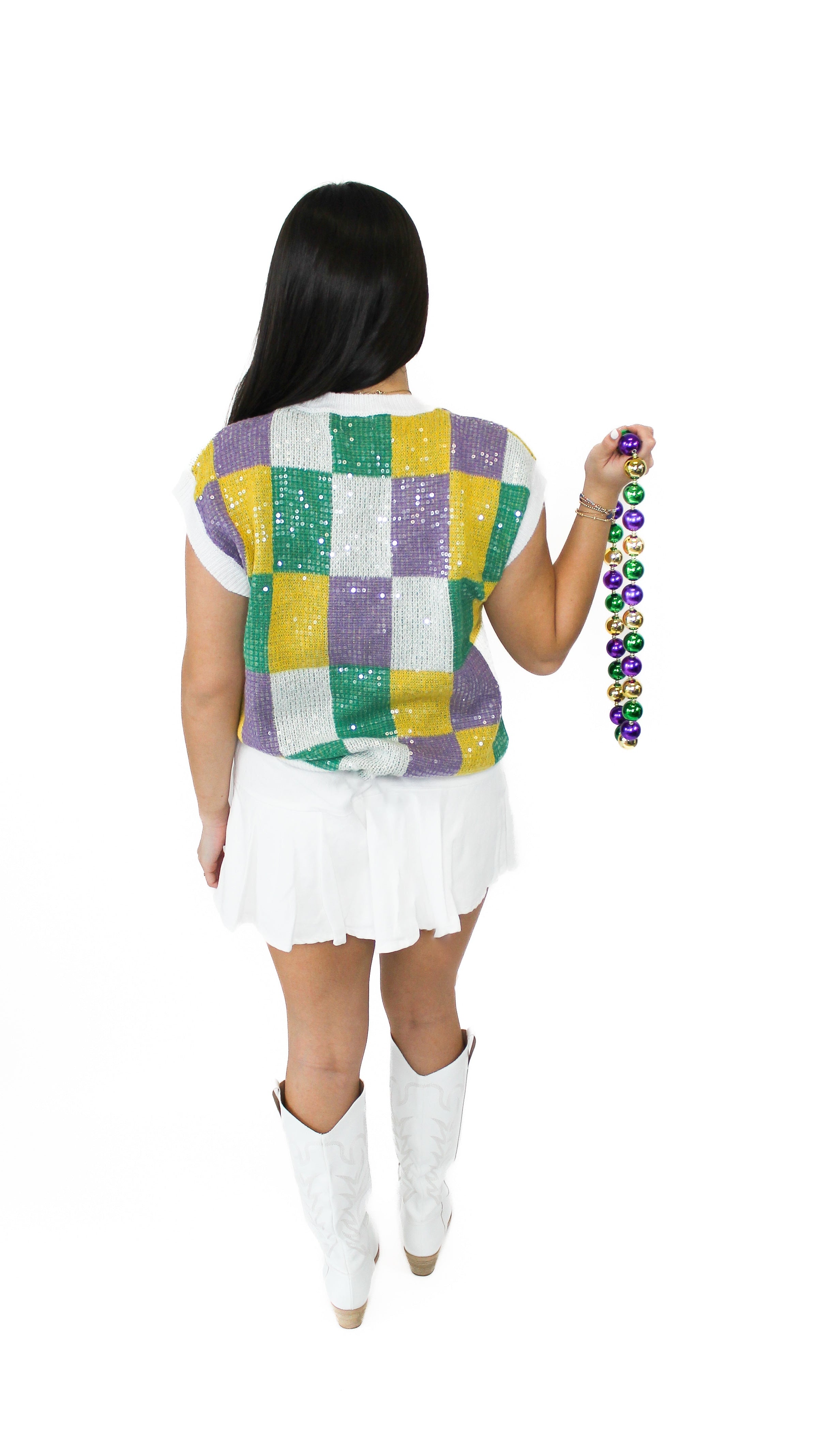"Festive Feels" Sequin Mardi Gras Checkered Sweater Top