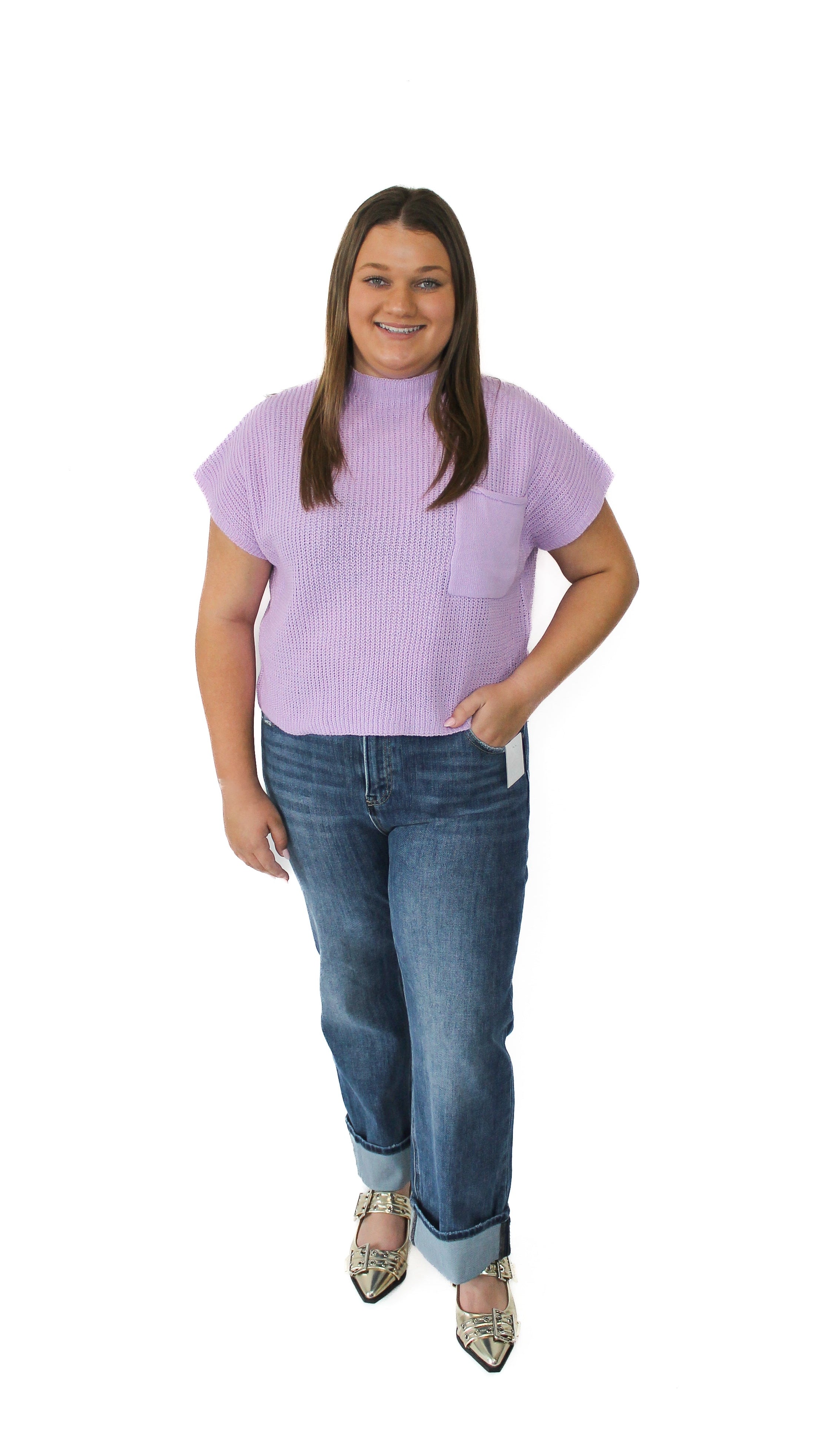"Grand Measures" Front Pocket Ribbed Sweater Top