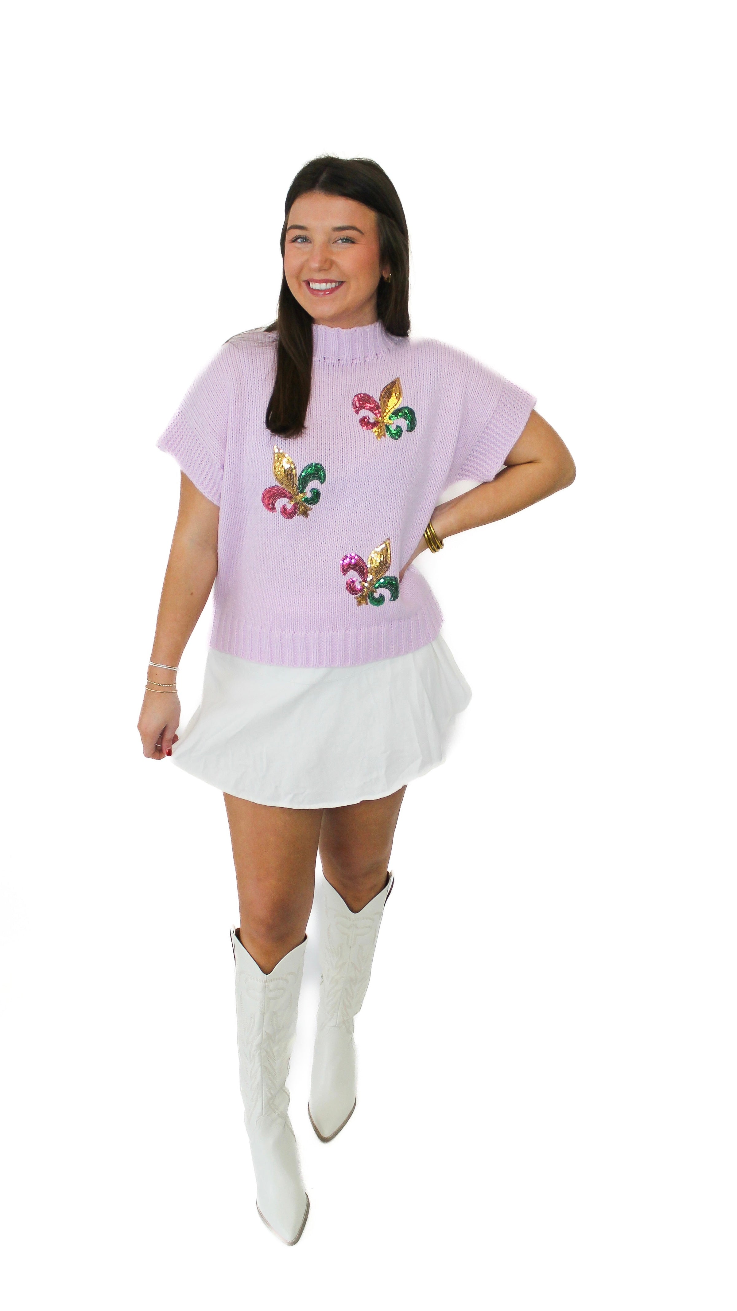 "Parade Ready" Sequin Mardi Gras Sweater Top