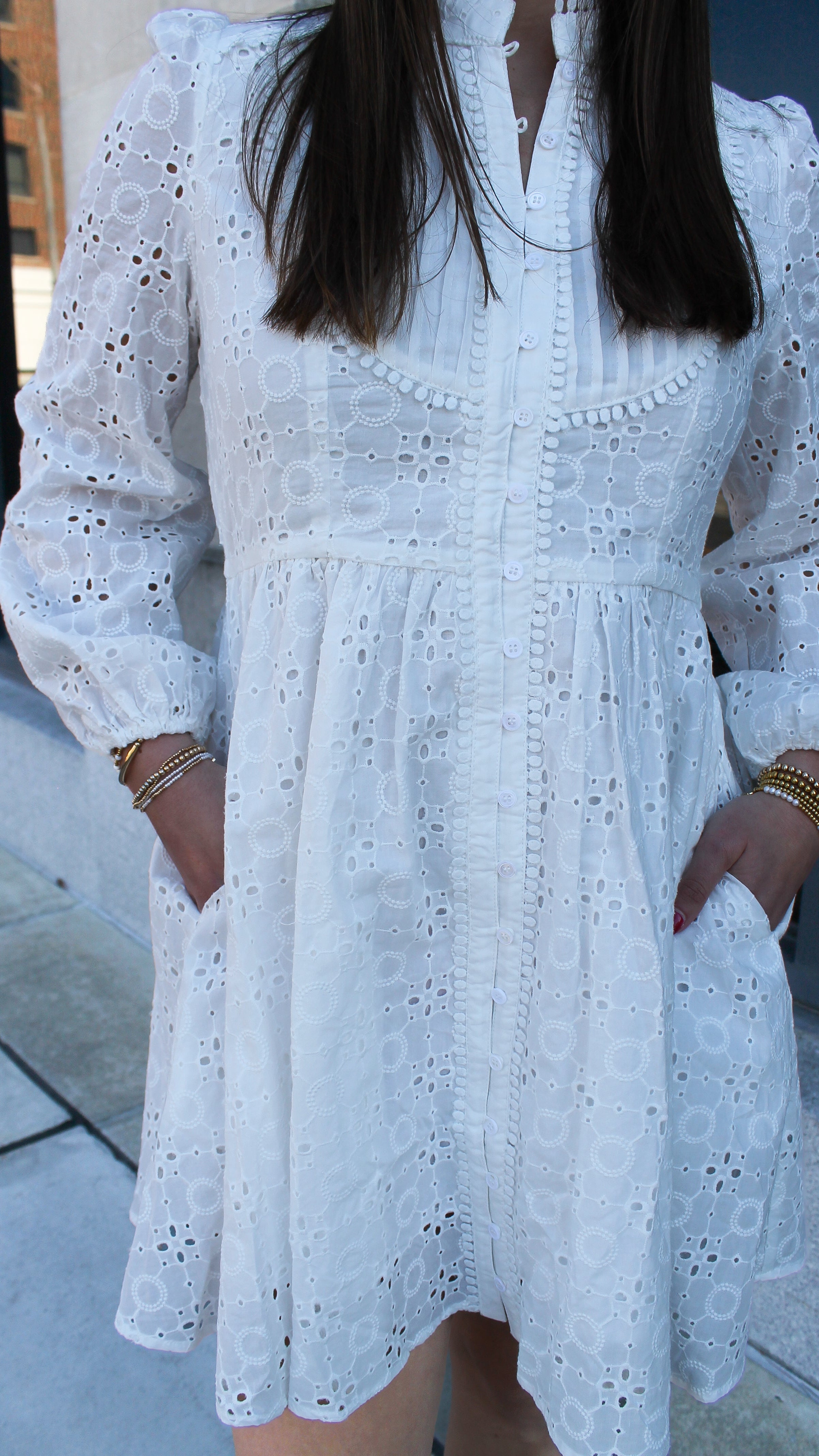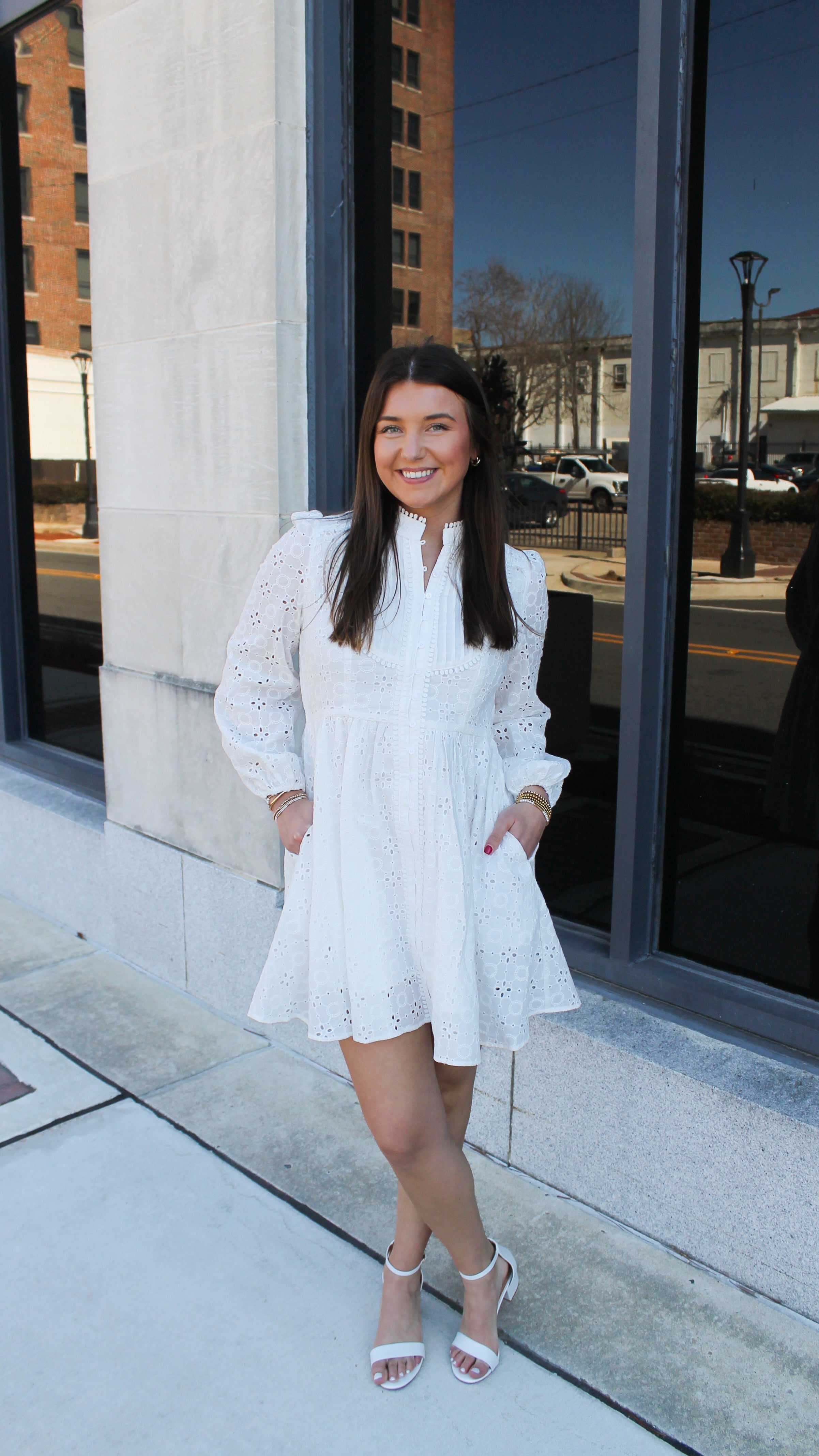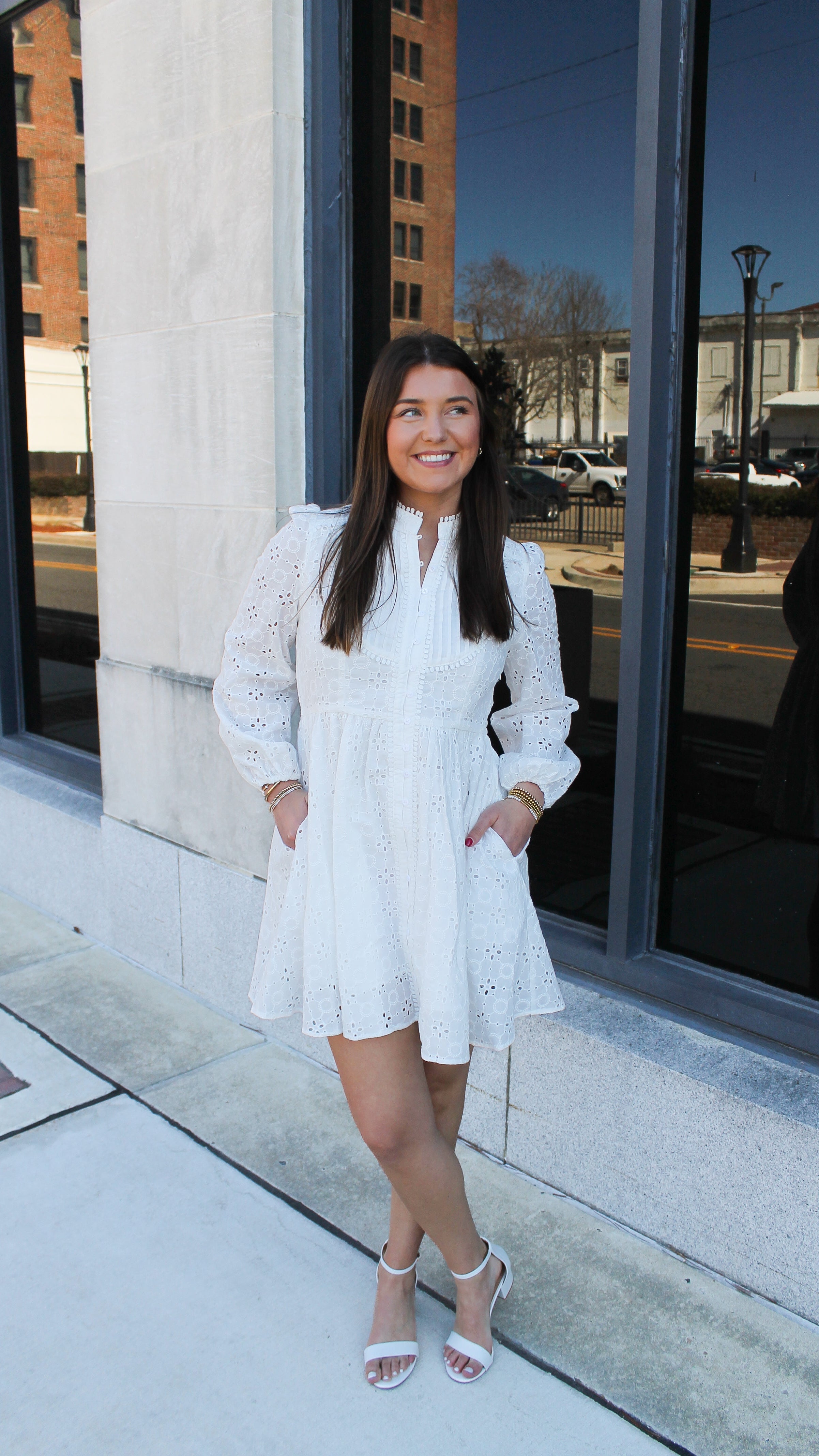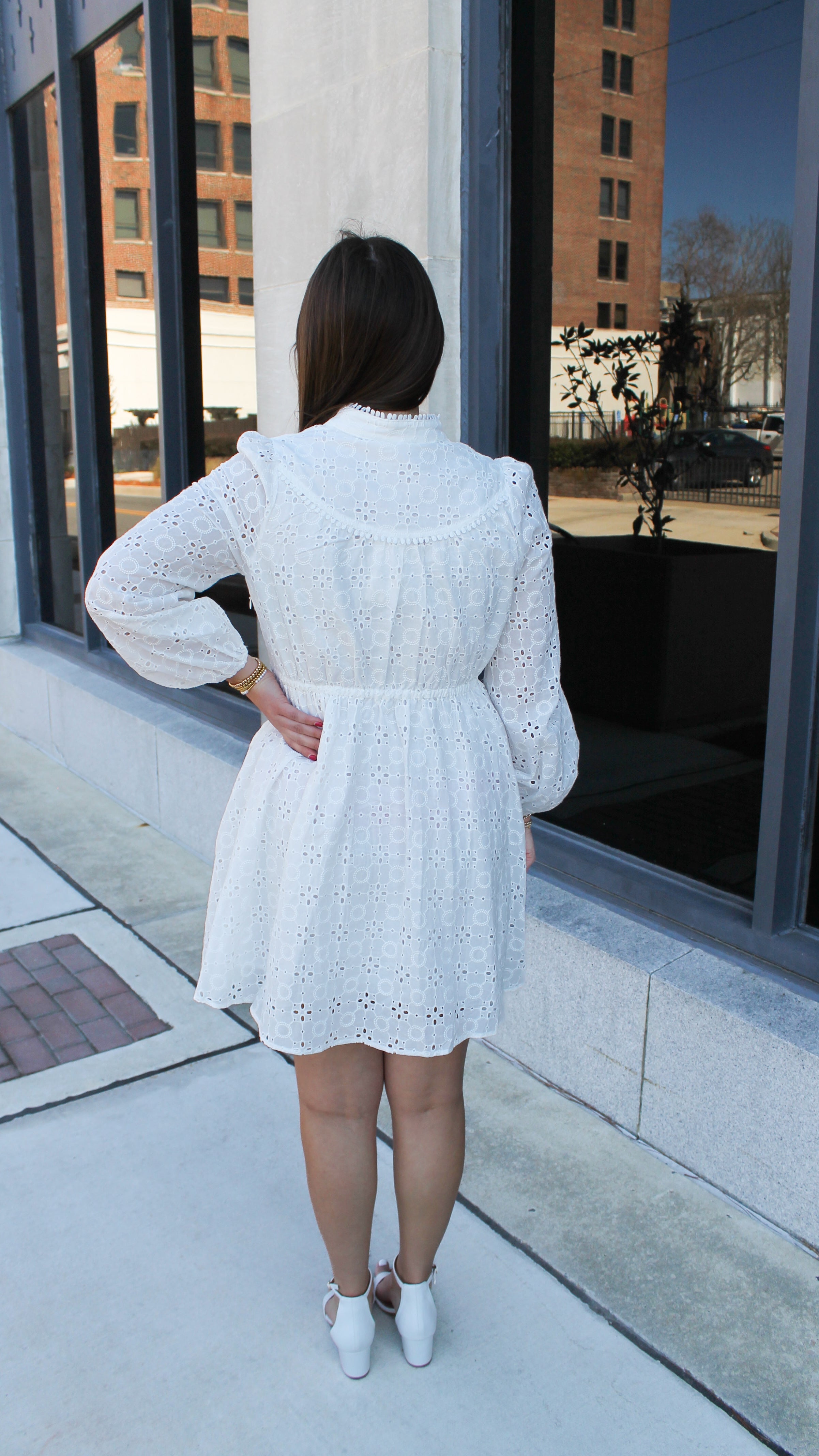 "Don't Be Basic" Embroidered Eyelet Mini Dress