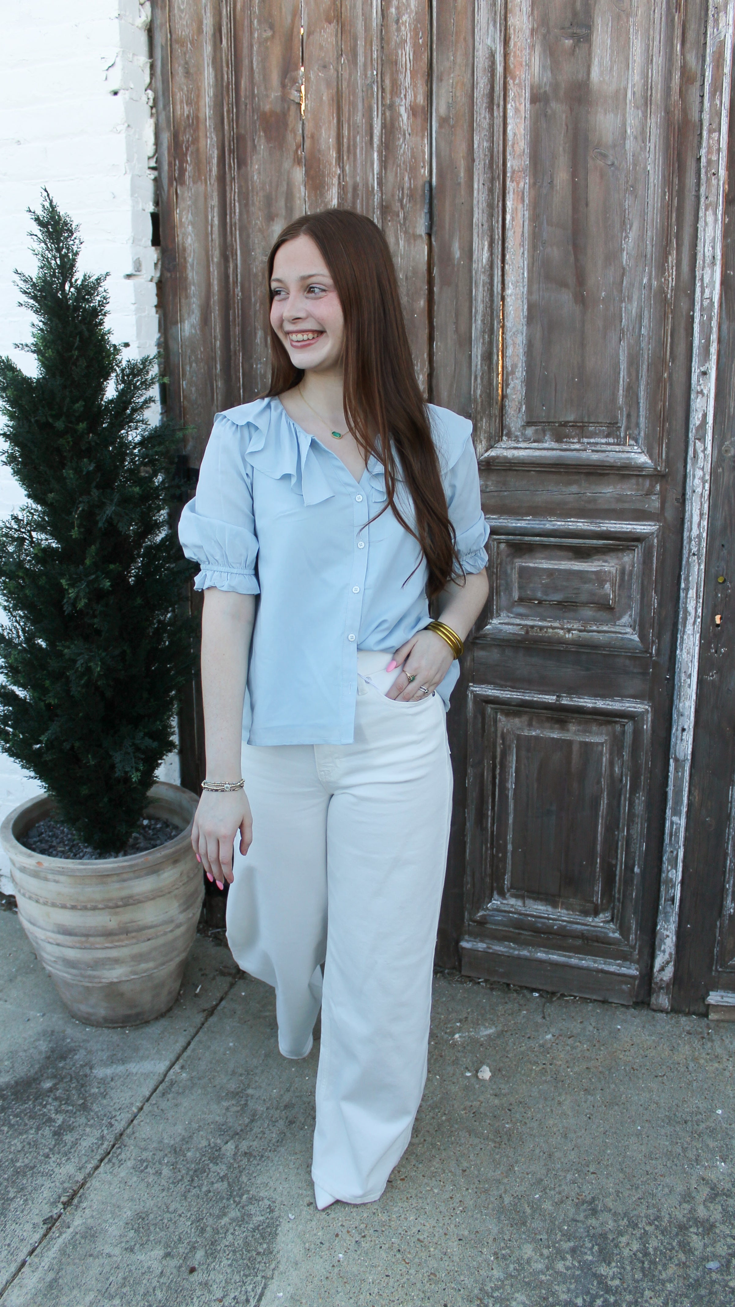 "In The Sun" Ruffled Collar Blouse