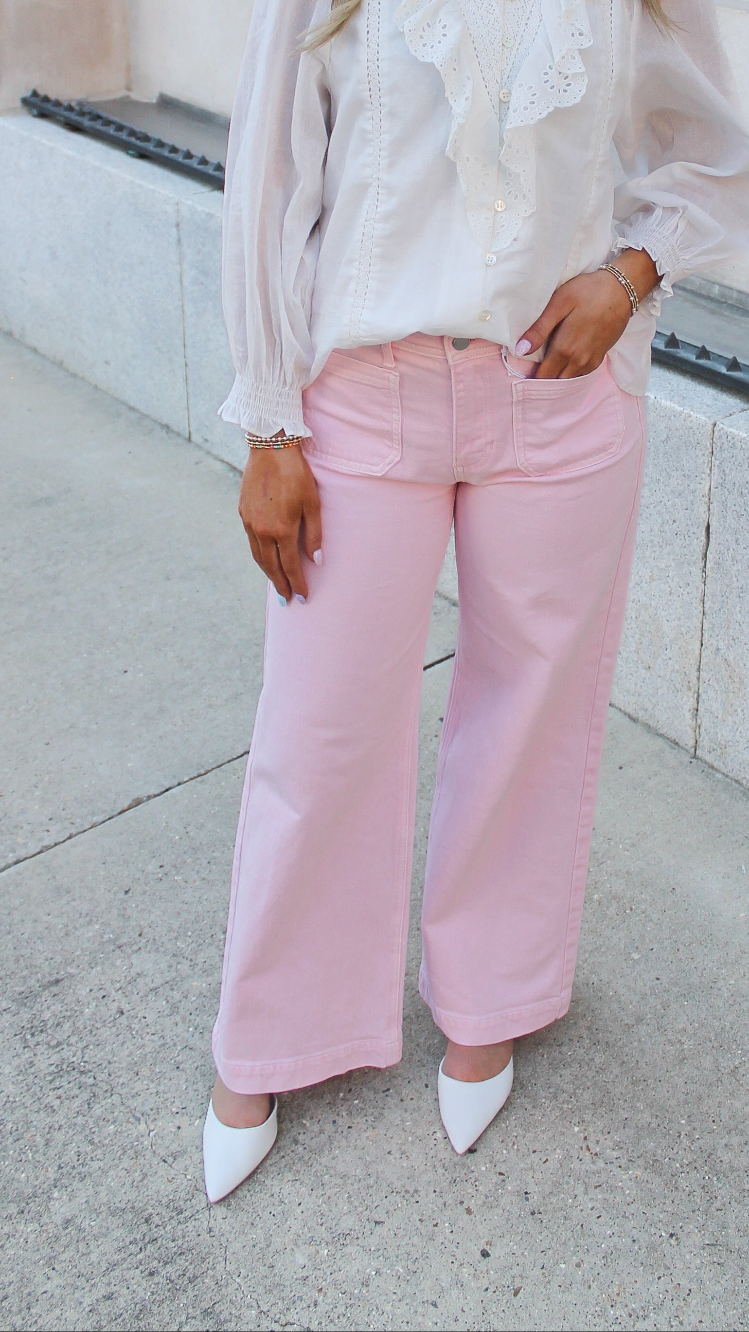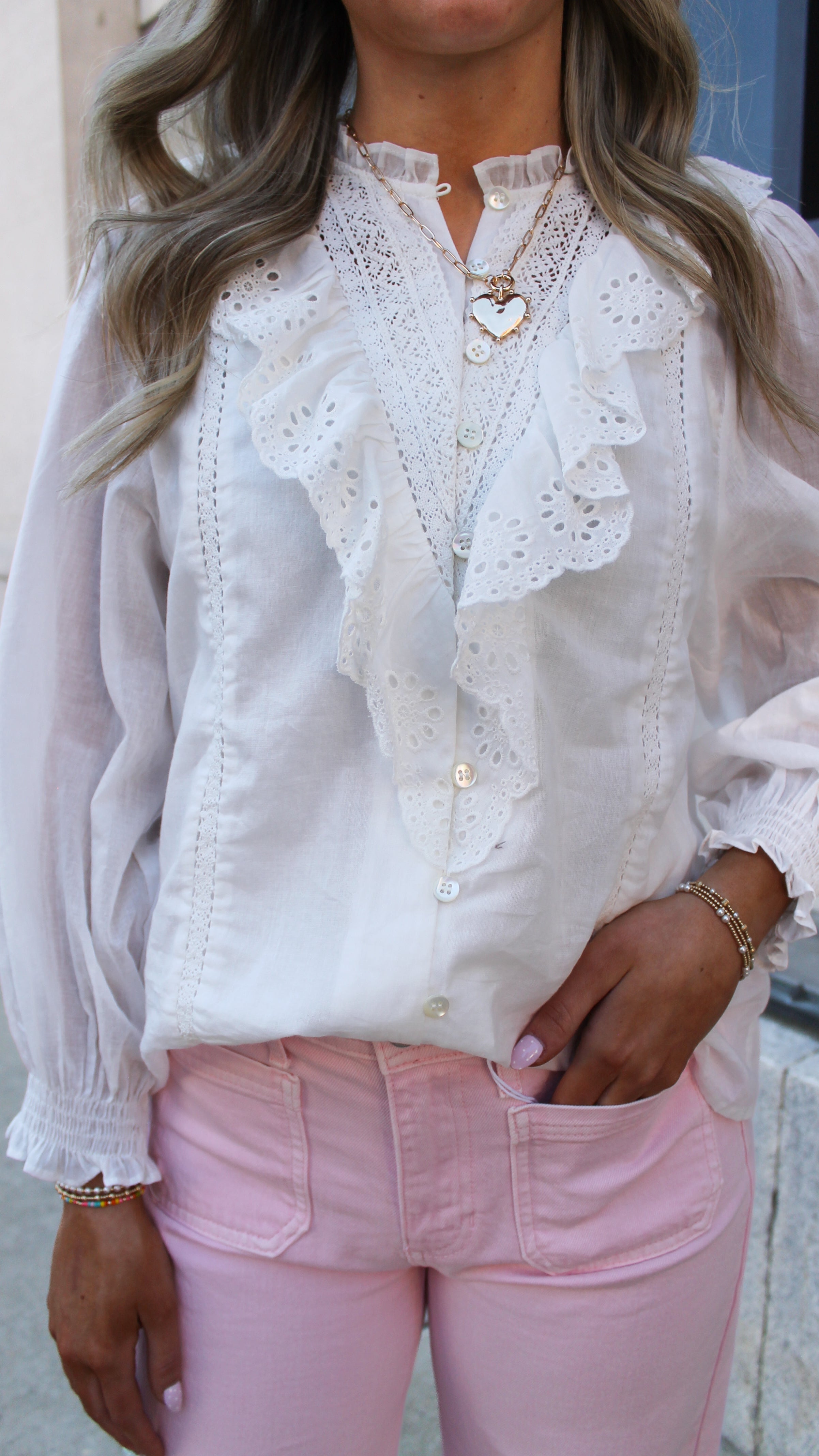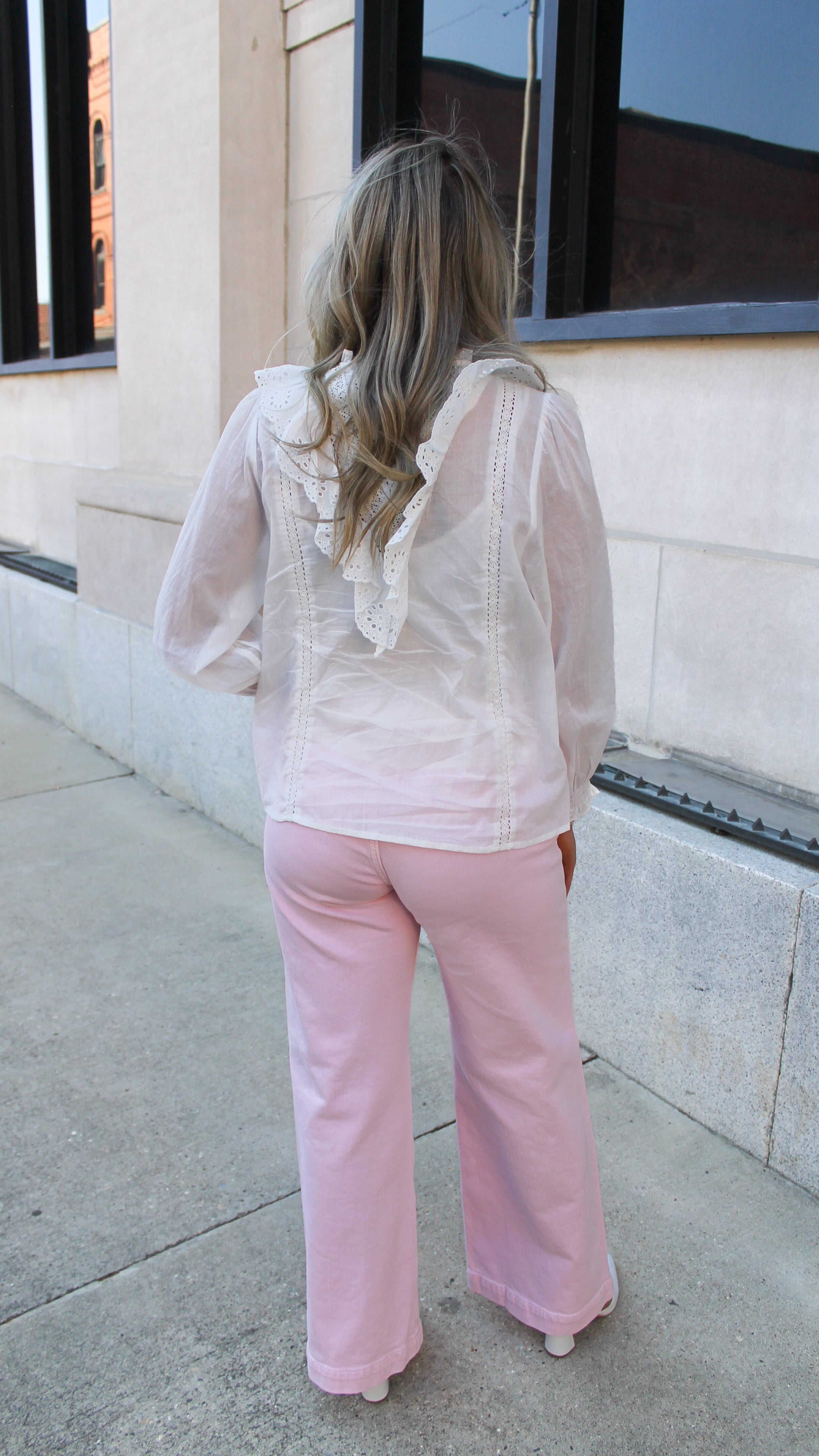 "Say Something" Eyelet Ruffle Lace Trim Top