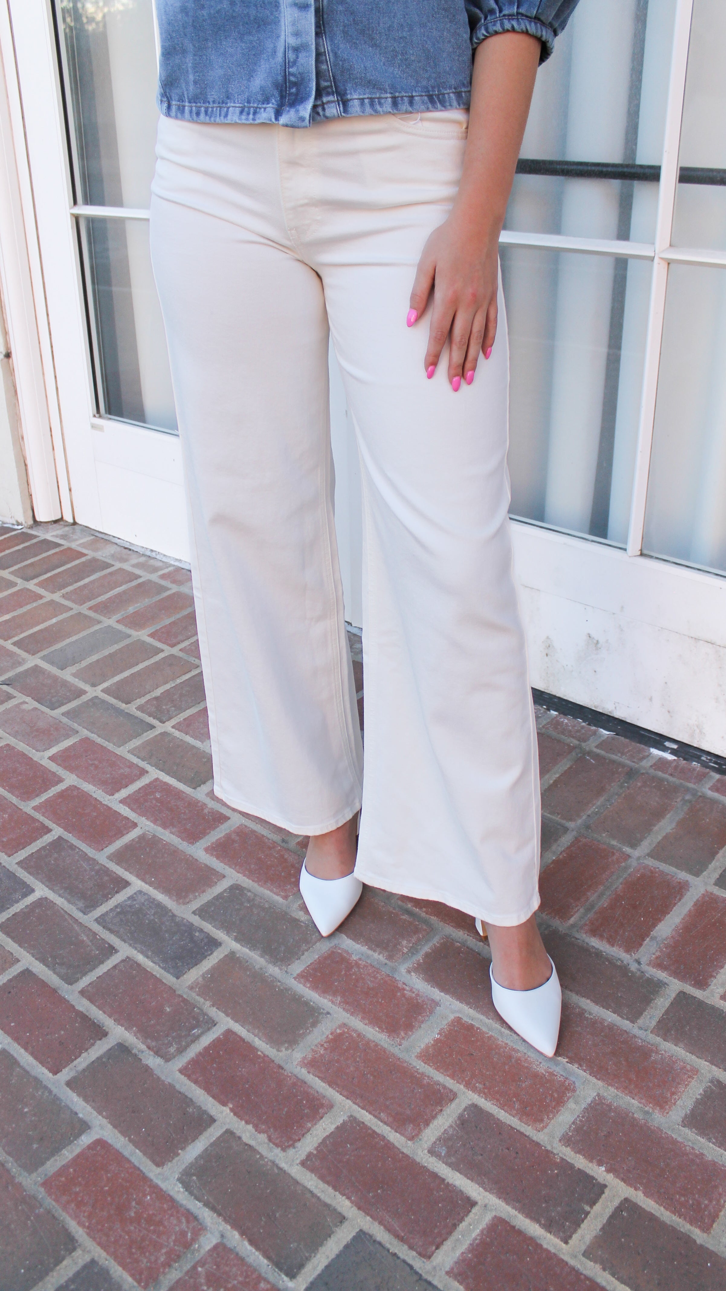 "Willow" High Rise Palazzo Wide Leg White Jean