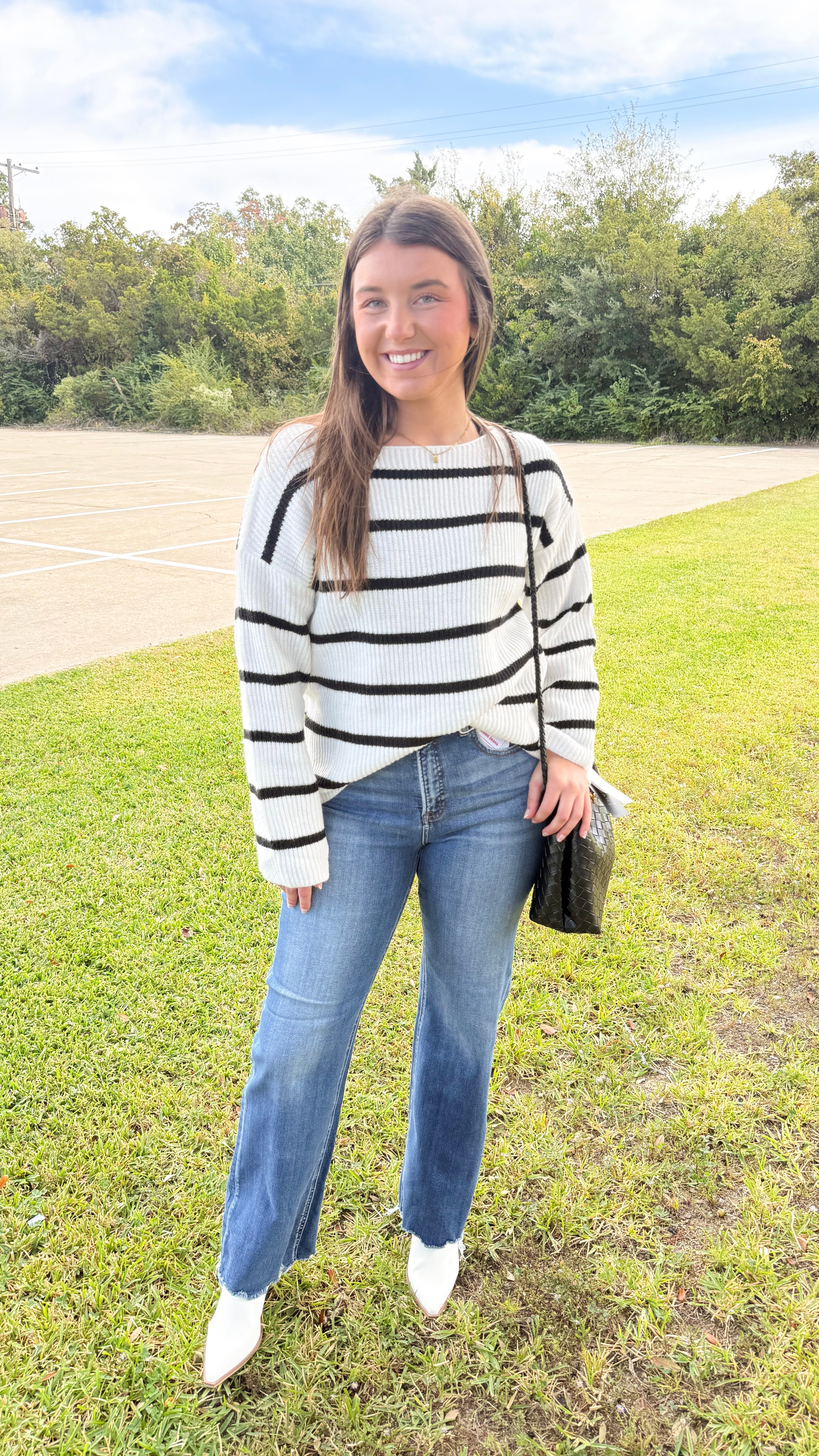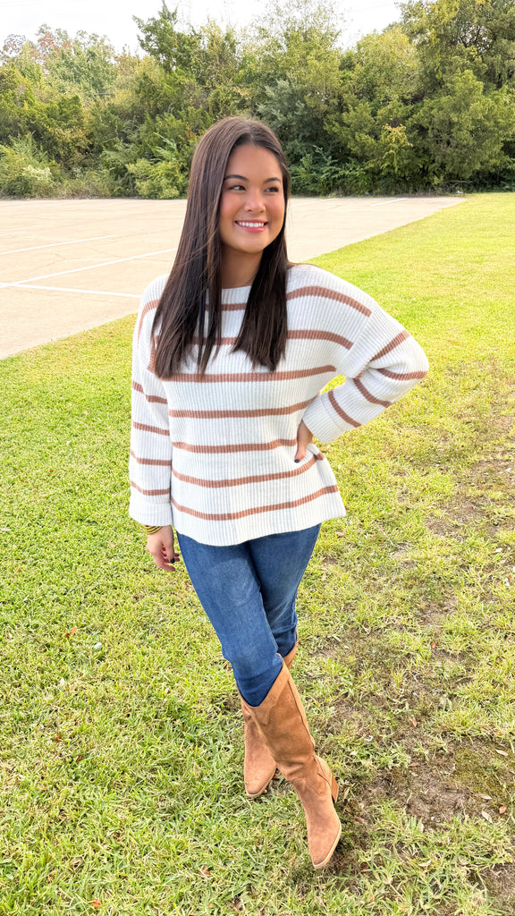 "Be The Light" Stripe Ribbed Chunky Long Sleeve Sweater Top